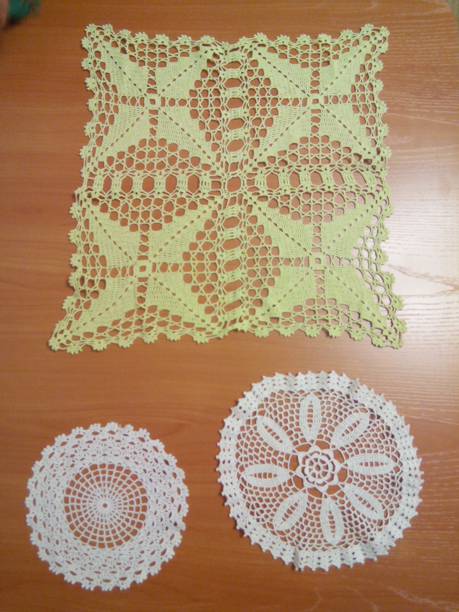 Ну и отдельная любимая ее тема - салфетки. Их она вязала в огромном количестве, что-то продано, что-то подарено. Одну салфетку сгрыз хомяк. А в закромах остались вот эти: