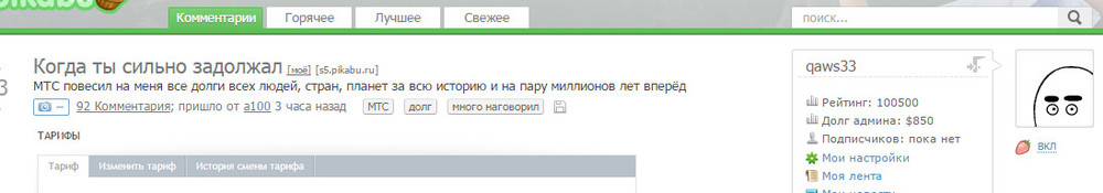 МТС повесил на меня все долги всех людей, стран, планет за всю историю и на пару миллионов лет вперёд