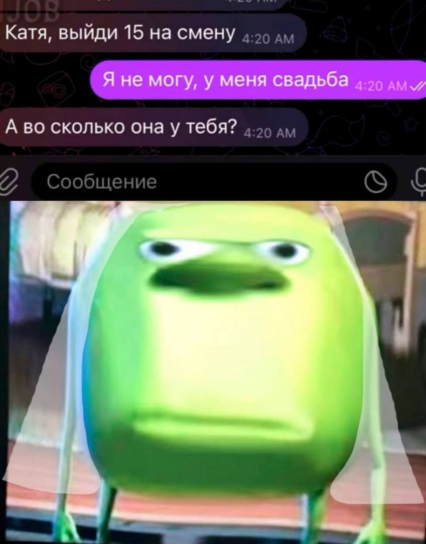 12 caudatemeow Когда у тебя свадьба, но менеджер считает, что это отмазка 2 месяца назад Взято из веселый кот Мемы Юмор Работа Свадьба Telegram (ссылка) Ещё 0