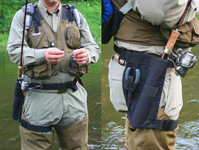 пользуюсь подобной штукой. в добавок у меня там плоскогубцы для вытаскивания крючков. и баночка со снастями. крепится к поясу и ноге. сидит очень плотно.