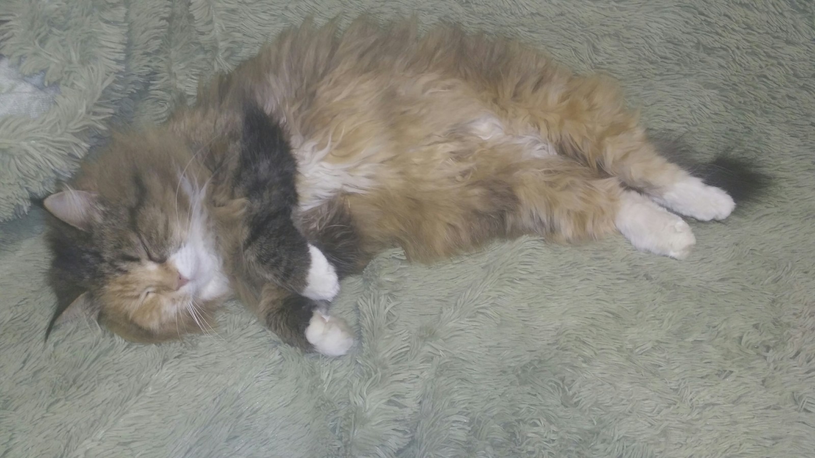 Сёмка искренне считает, что это пушистое покрывало подарили ему. И теперь оно лишь только его, поэтому пока он забыл о своем любимом месте на шкафу.