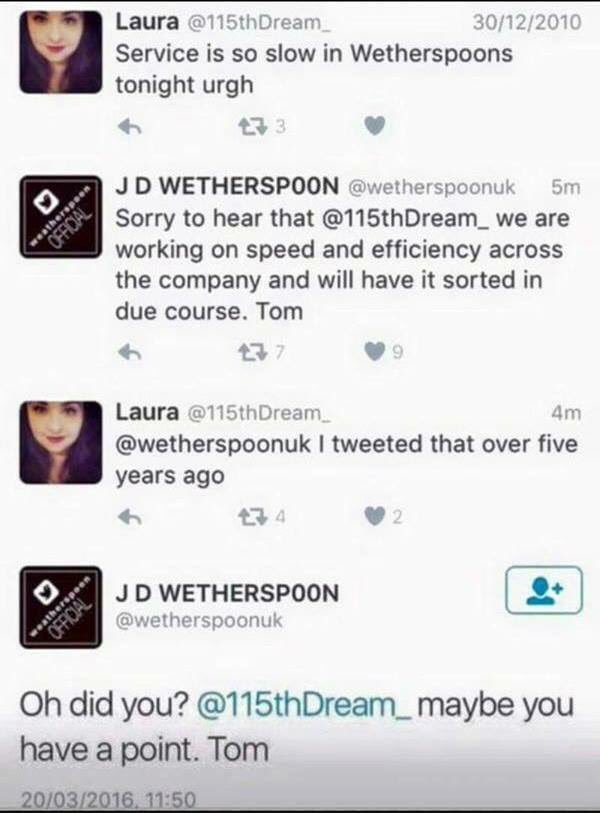 - Обслуживание в Wetherspoons сегодня такое медленное... 30/12/2010