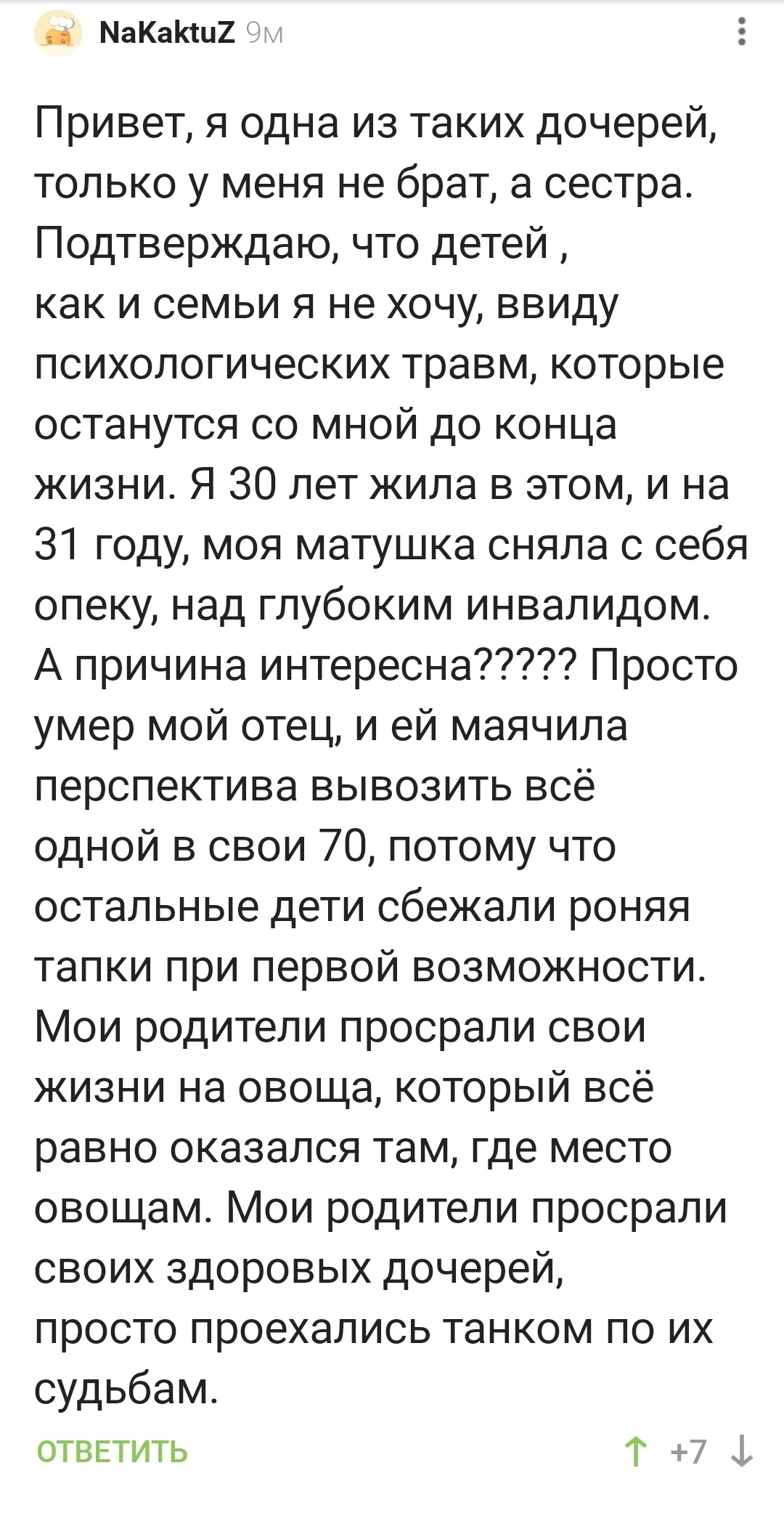 915 Wellikan Когда в семье ментальный инвалид, разрушается жизнь всех членов семьи 6 дней назад #comment_373405734 Инвалид Разум Семья Комментарии на Пикабу Скриншот 139 24 5 2 2 1 Ещё 1