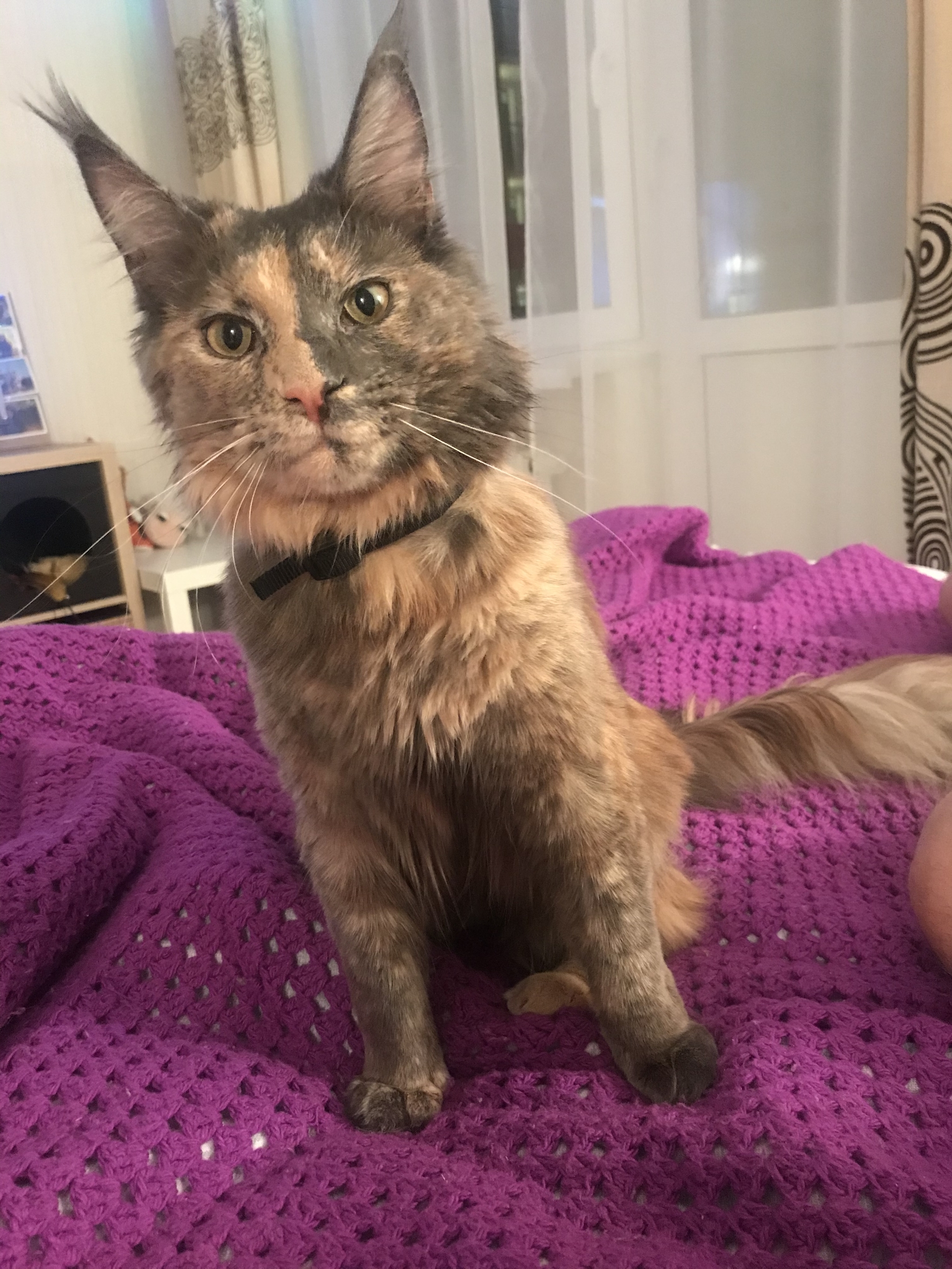 Когда в моей жизни появился мейн-кун я понял что до этого с одной кошкой была не "жизнь". Ссыт в лоток аки лошадь и потом минут 10 пытается это "закопать". Жрет за троих. Когда даю корм своим пушистым засранкам то кунша за моей двортерьеркой ещё подметает. Привычка ВСЁ трогать лапой. Всё до чего можно дотянуться обязательно будет потрогано и попробовано на зуб. Очень любит сесть на подоконник со скучающим видом, и наблюдать как ты ешь а потом под предлогом "я тут потянусь чуть чуть" ловко лапой уворовать что нибудь с тарелки. Конфеты? Продукты в "хрустящей" упаковке? Их лучше есть вне квартиры. Нет, сами конфеты и прочее кошку интересуют мало. Её интересует шелестящаяя обертка которая эти продукты покрывает. Стоит только начать разворачивать конфетку или открывать чипсы, вафли, вообще все что издает этот "шуршуршур" как котейка мчится из любой части квартиры, садится в позицию "кошка-копилка" и смотрит на тебя преданными глазами Хатико. Если не выбросить сразу в мусор то будет украдено, запрятано и достато ночью. И привет бессоница и ночные гульбища. =) А если вы спите... Ну и что? Прийти и помявкать вам в ухо это вообще не проблема. Причем в любое время суток. Шерсть... Шерсть везде, черная. Длинная. Вычесываем - но проблема не решается. Линяет сейчас меньше но все равно линяет. Все вещи только в шкаф. Черные, белые, цветные - не суть, отчистить будет одинаково сложно. Воду не любит от слова совсем. Только пьет. Но спать в раковине - за милую душу =) Вобщем, мейн-кун это как енот только разрушений меньше =)