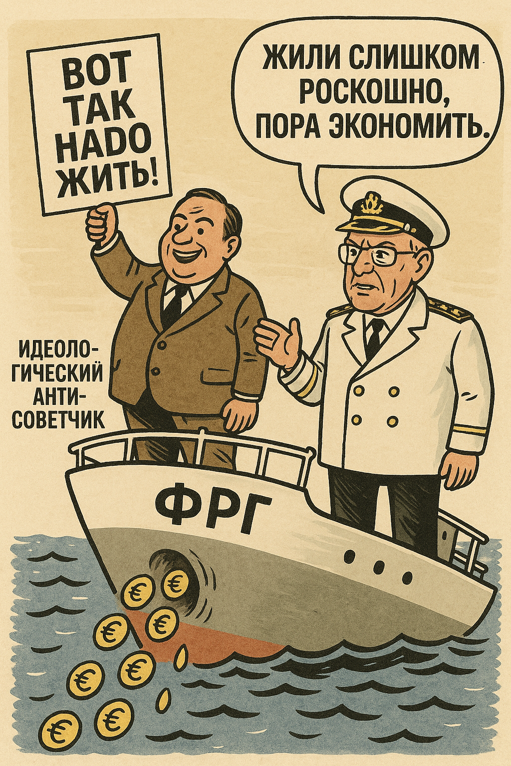 Ирония в том, что в СССР за попытку жить не по средствам тебя максимум в «финансовый план» вернут, а в ФРГ — просто урежут пенсию и пособие. Ну и, конечно, виноваты не корпорации, выводящие прибыль в офшоры, а «лентяи на пособиях». Классика жанра.