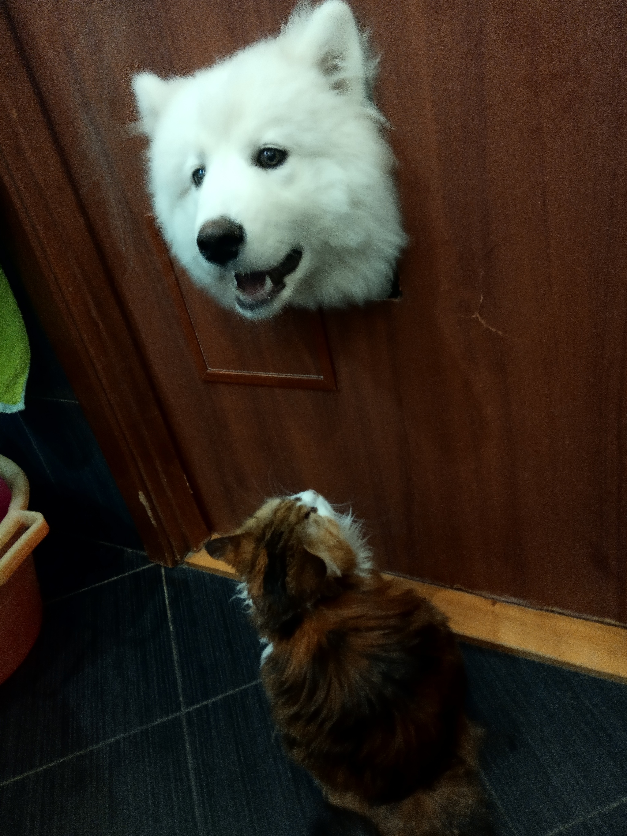 125 DELETED Самоед Когда вход сделали меньше чем хотелось бы 4 года назад [моё] Самоед Домашние животные Коты и собаки вместе Кот Собака 1 Ещё 0