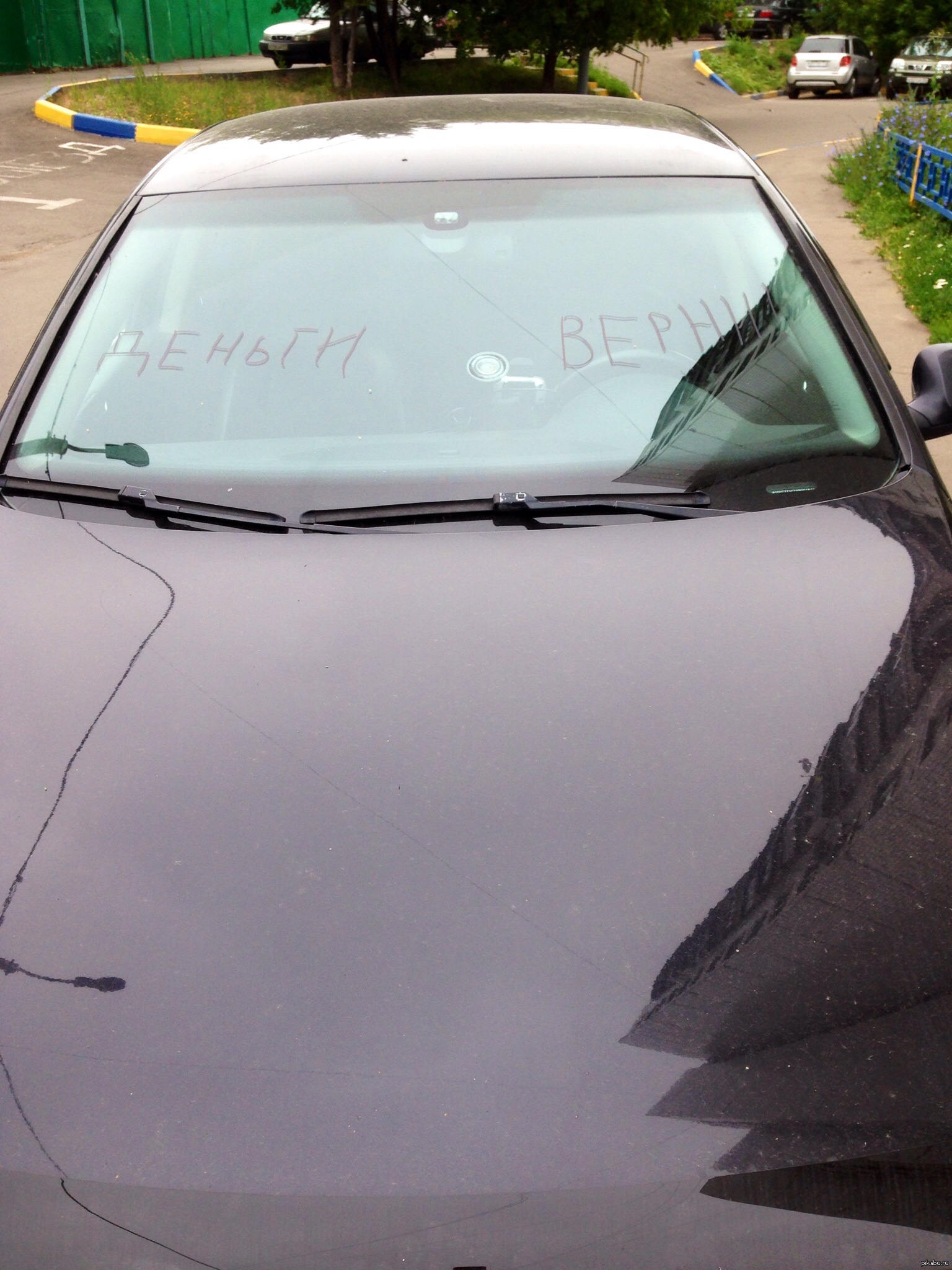 Nezadacha9113 Когда задолжал опасным ребятам! 11 лет назад А этому автовладельцу вообще не везёт, то прокололи все 4 колеса, то краской облили, теперь вот это. Опасный у нас двор. (Надпись сделана маркером). [моё] Авто Лобовое стекло Маркер Надпись Деньги верни Москва