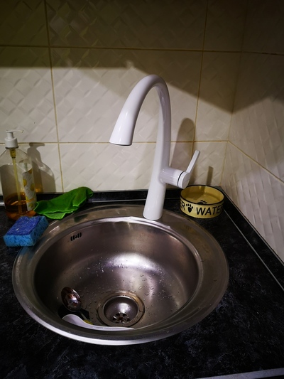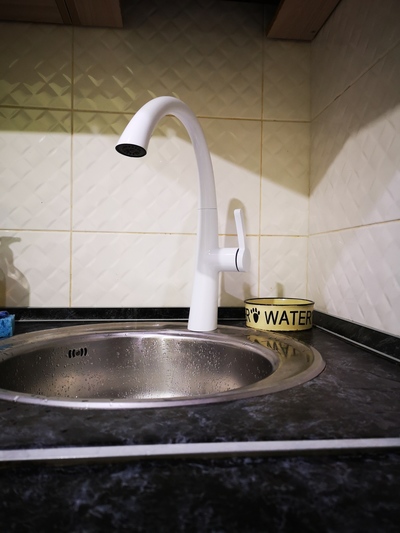 Во о чем думал человек, заказывая белый смеситель в такую убогую кухню? Типа поставлю белый матовый смеситель и раковина заиграет новыми красками?