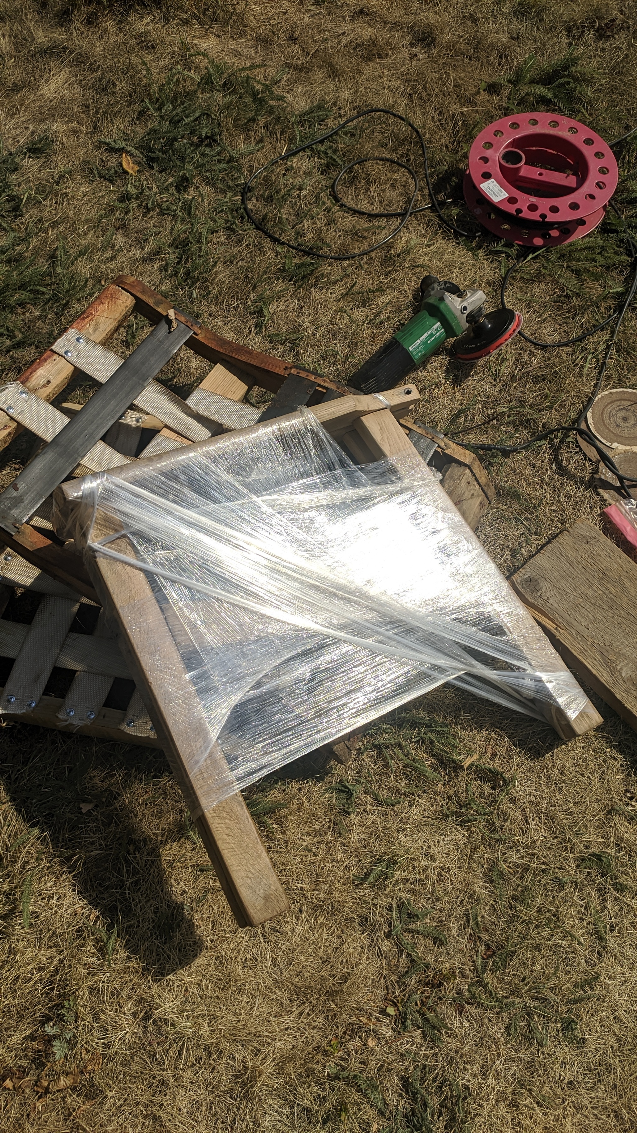 Привёз, пациент скорее мёртв чем жив, разобрал на составляющие, отшлифовал детали по отдельности, выяснилось что кресло дубовое, после шлифовки захотел оставить текстуру дерева как есть, чтобы было видно что кресло старое.