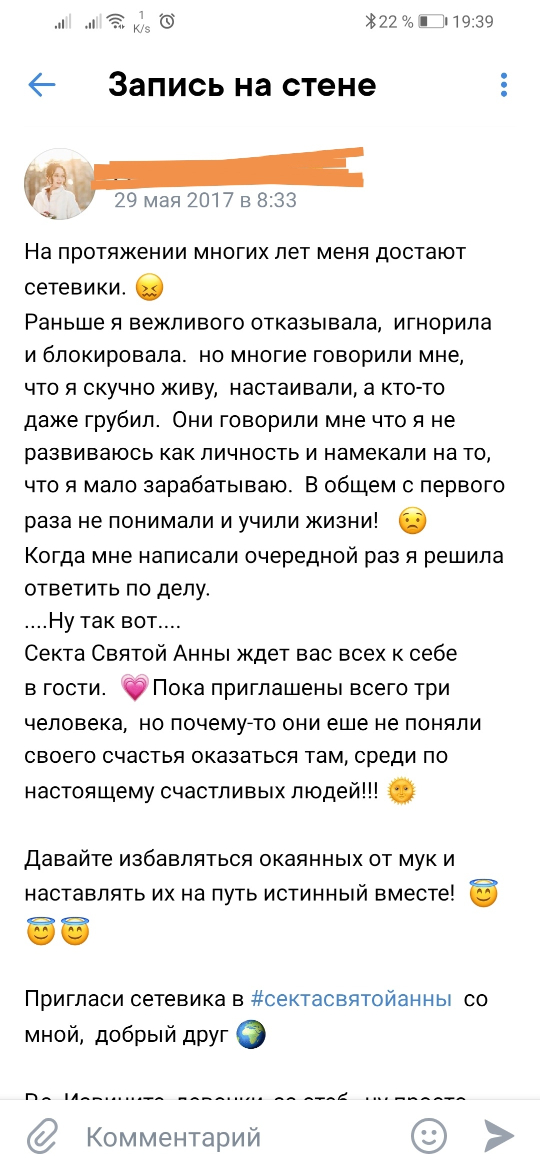 6 Snid Когда заколебал сетевой маркетинг 4 года назад Пригласим товарищей в обитель счастья и спокойствия)Пример в комментариях)P.S. Естественно секта выдуманная Сетевой маркетинг Спам Секта Длиннопост Ещё 0