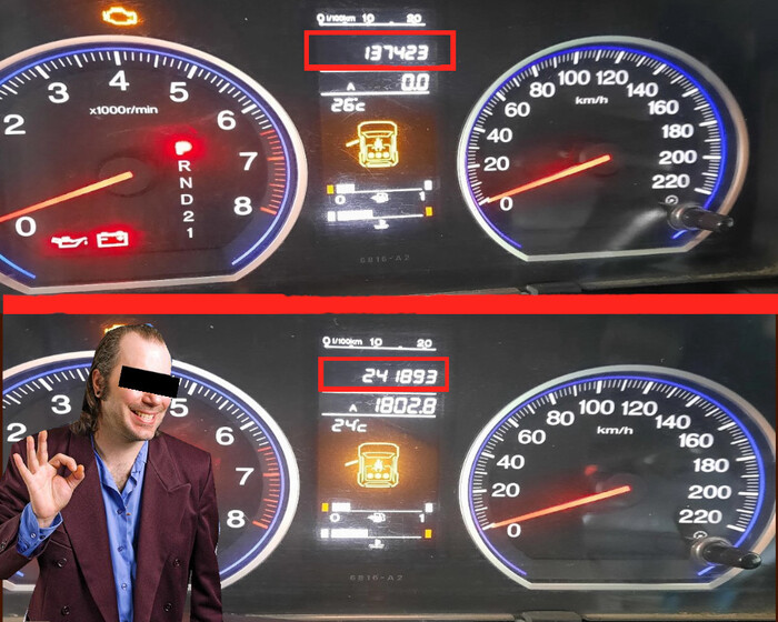 Допустим, скручивал пробег не профессионал, изменил показания одометре, а в дублирующих блоках информация о старом пробеге осталась. Или вы нашли данные о том, что пару лет назад машина продавалась с большим километражем. Казалось бы всё – виновник пойман! Как бы не так.
