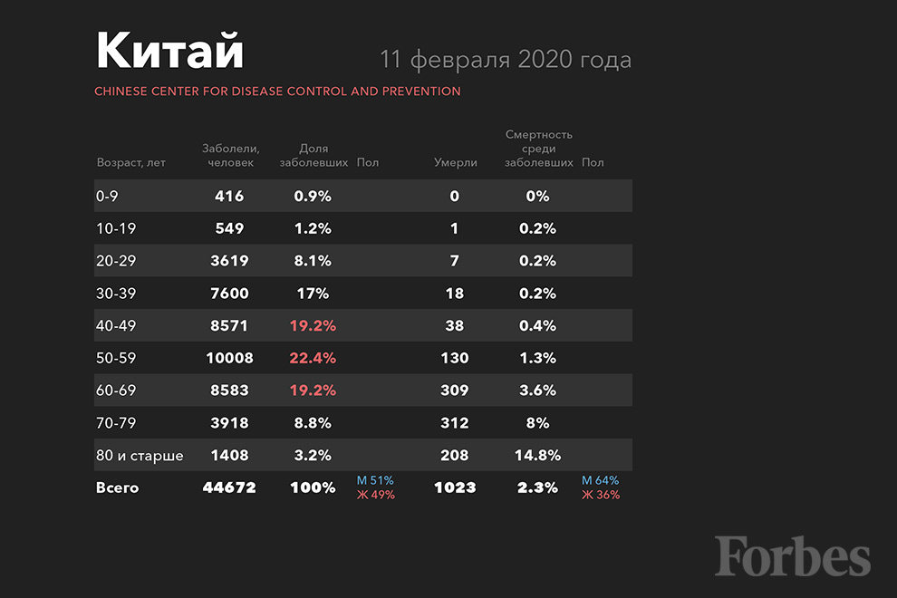 Самые высокие риски тяжело заболеть и умереть из-за COVID-19 — у пожилых людей, особенно с серьезными сопутствующими заболеваниями. Например, в Китае около 80% смертей из-за коронавируса пришлось на людей старше 60 лет. В то же время американские исследователи указывают, что более 80% всех зарегистрированных в Поднебесной заболеваний протекали в легкой форме. В Италии 68% умерших из-за COVID-19 имели сопутствующие заболевания: сердечно-сосудистые, респираторные, диабет, иммунодефицит, онкологию, ожирение, заболевания почек и другие.