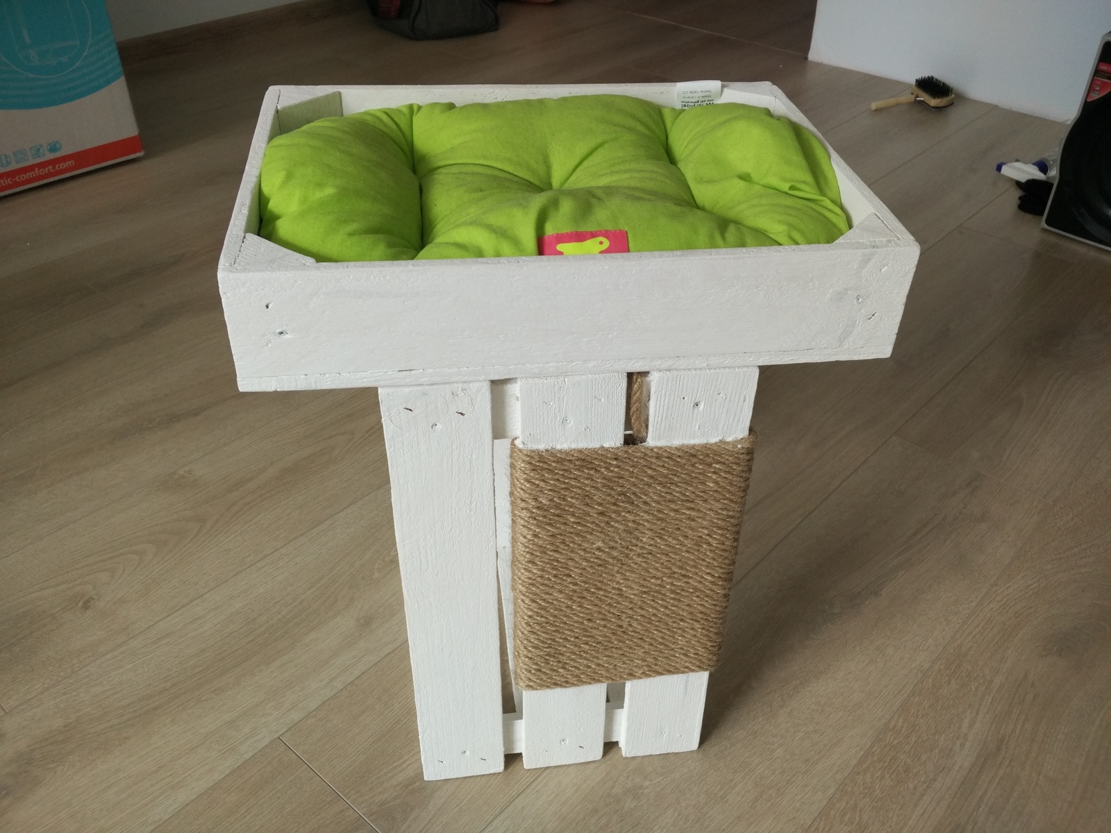 Для удобства котика были сделаны бортики на лежанке. Острые края зачищены наждачкой.
