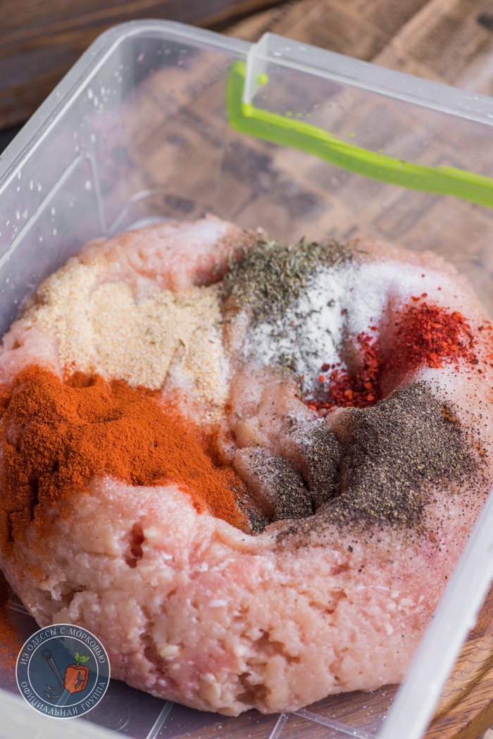 - Мясо: самое подходящее на мой взгляд здесь мясо – куриные филе и бедра или индейка. Я также делал на смеси свинины и говядины. Тоже вкусно, но с курицей понравилось больше. Вы же можете проэкспериментировать, вдруг свинина-говядина это ваш вариант.