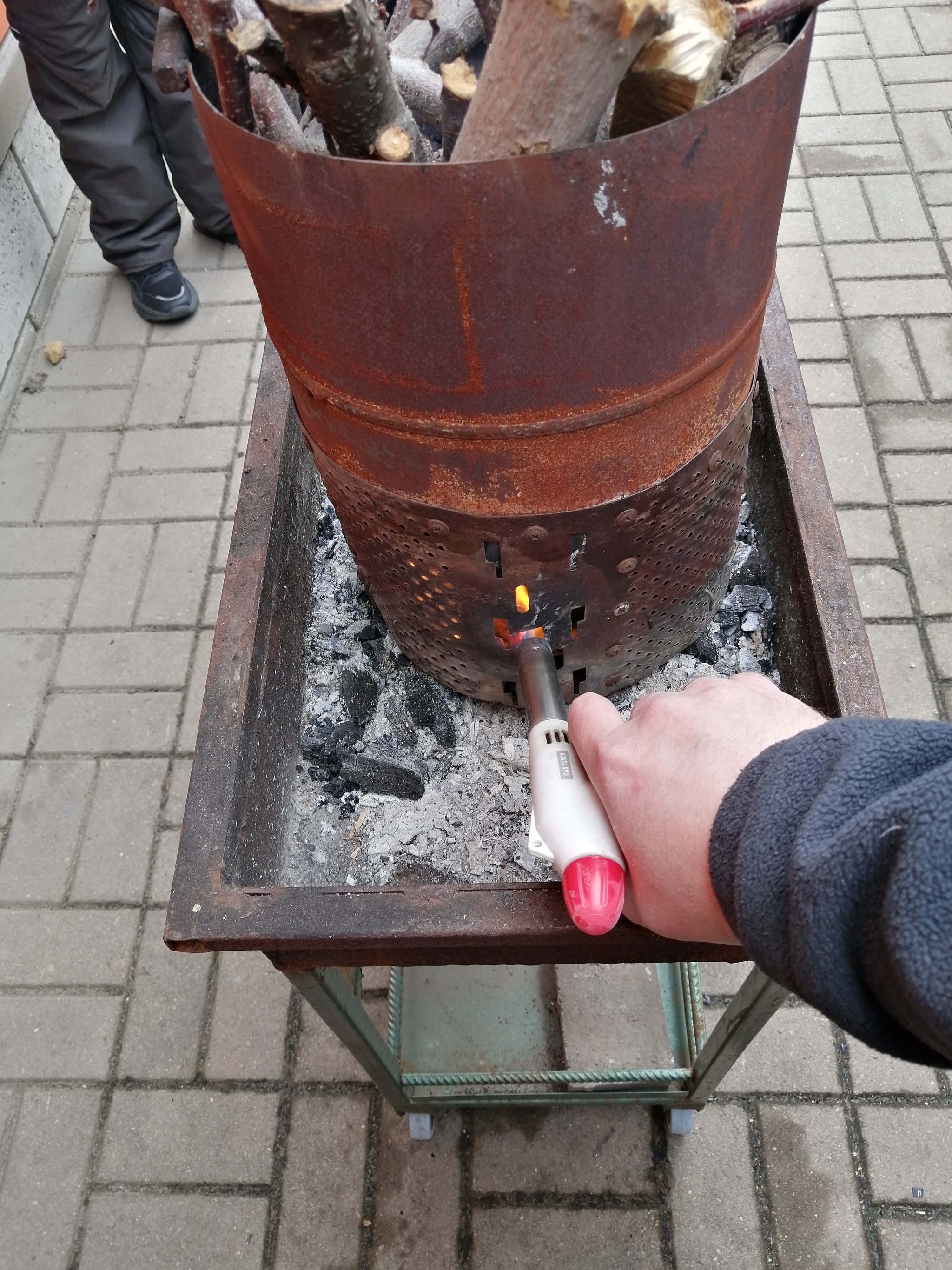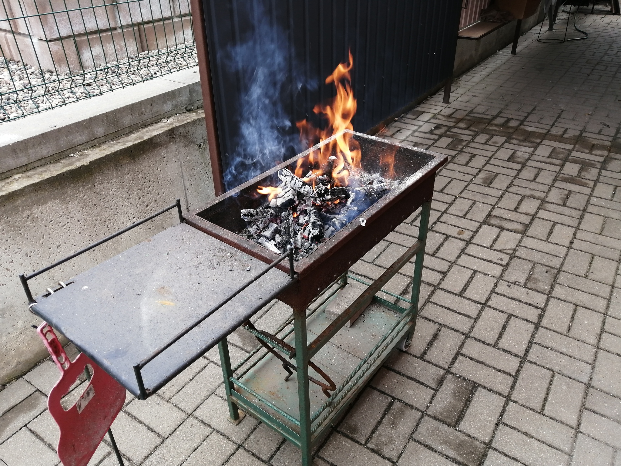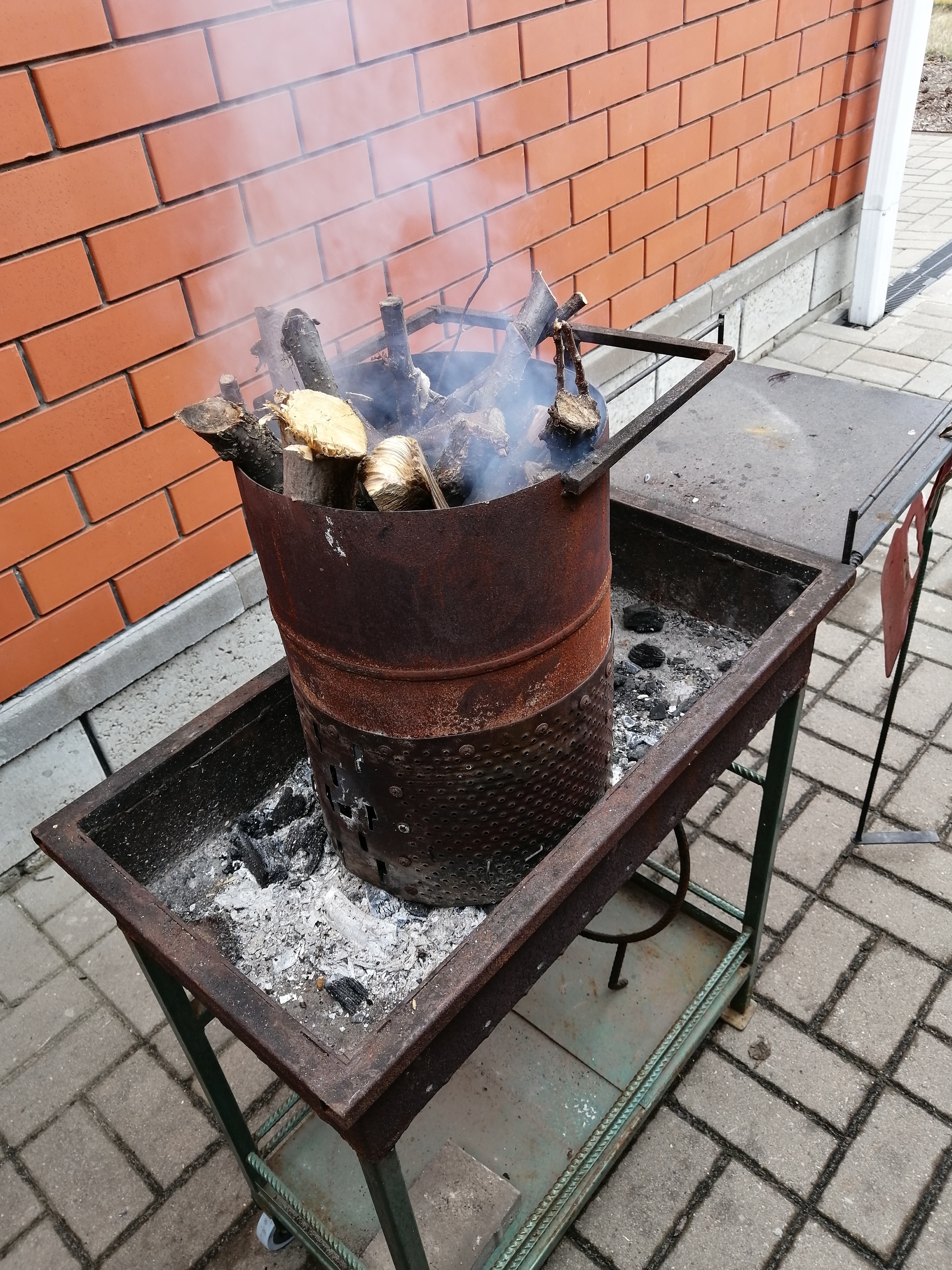 Стартер на сегодня свободен. Свое отработал. В деле был 15 минут. Это его обычный режим. Пусть остывает. Но сами дрова в мангале, доходят до кондиции еще 15 минут. Если бы был уголь, эту процедуру пришлось бы миновать.