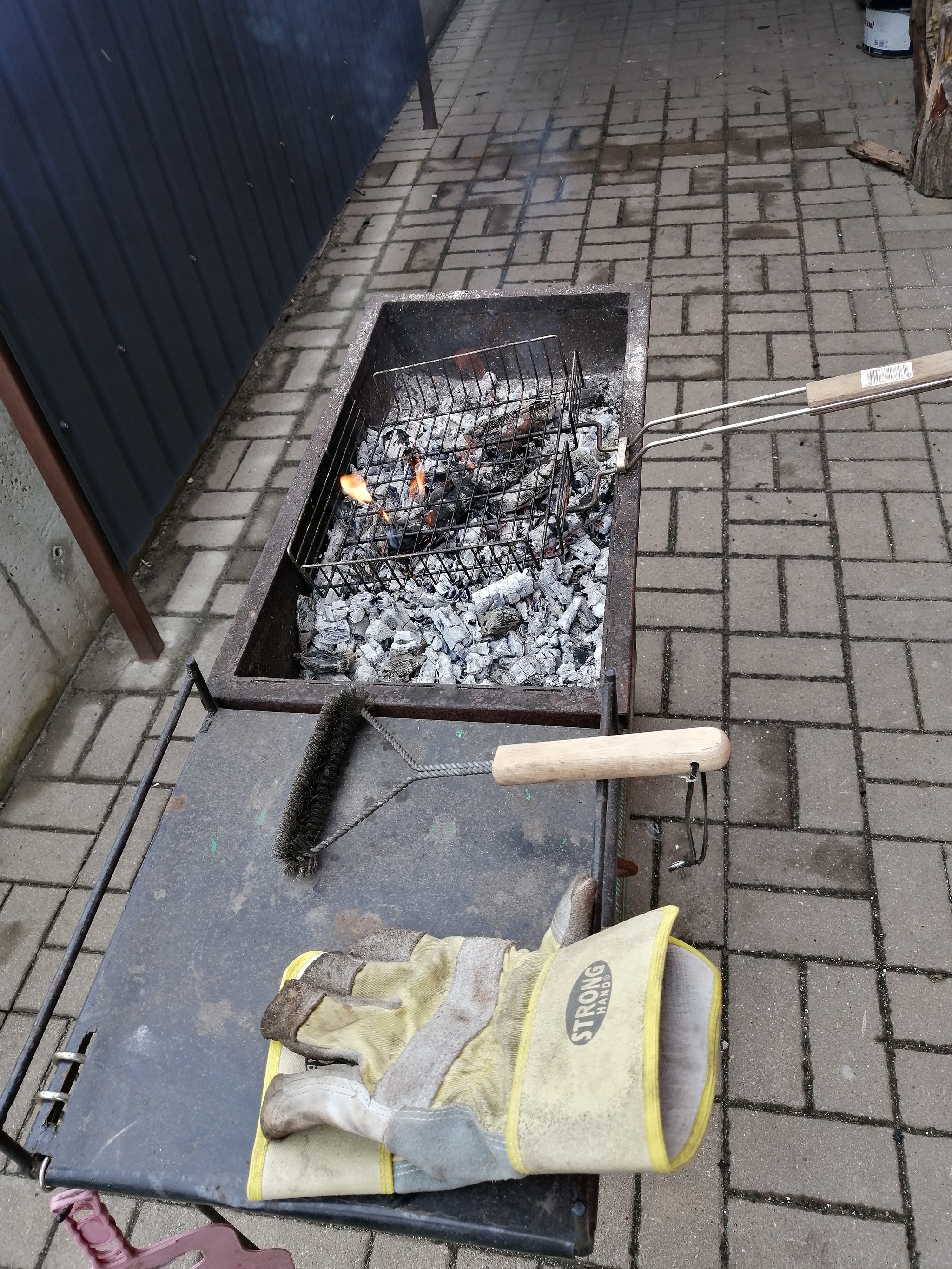 С прошлого раза оставил не чищенную. Обычно на это времени нет. Да и в жиру хранится, на дольше хватит самой решетки. А перед использованием прокаливаю. И очищаю щеткой. Их у меня несколько. Можно вычистить любую решетку.