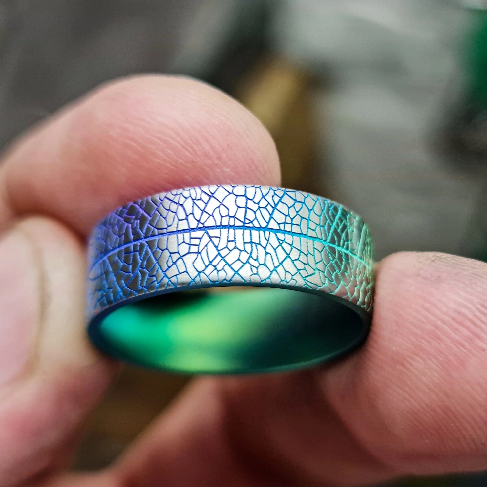 Колечко с текстурой листика