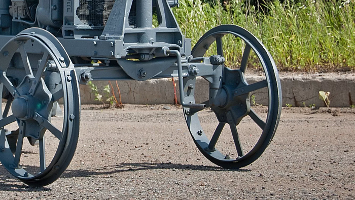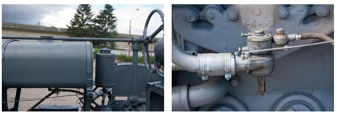 Трудно в жизни увидеть что-то более железное, чем трактор первой половины ХХ века. И несмотря на небольшие размеры (чуть больше, чем Фордзон, но заметно меньше, чем СТЗ-15/30), весит Универсал прилично – 2 100 кг. А мотор-то скромный… Всего 22 л.с. Объём, правда, серьёзный – 3,6 л. Мотор карбюраторный, но не совсем бензиновый – заправлять трактор нужно лигроином. Хотя топливных бака у трактора два: маленький всё-таки для бензина, на нём проще запустить мотор. А вот большой как раз для лигроина. Впрочем, мы ездили на керосине. Этому трактору практически всё равно, что у него в баке. Горит, и ладно.