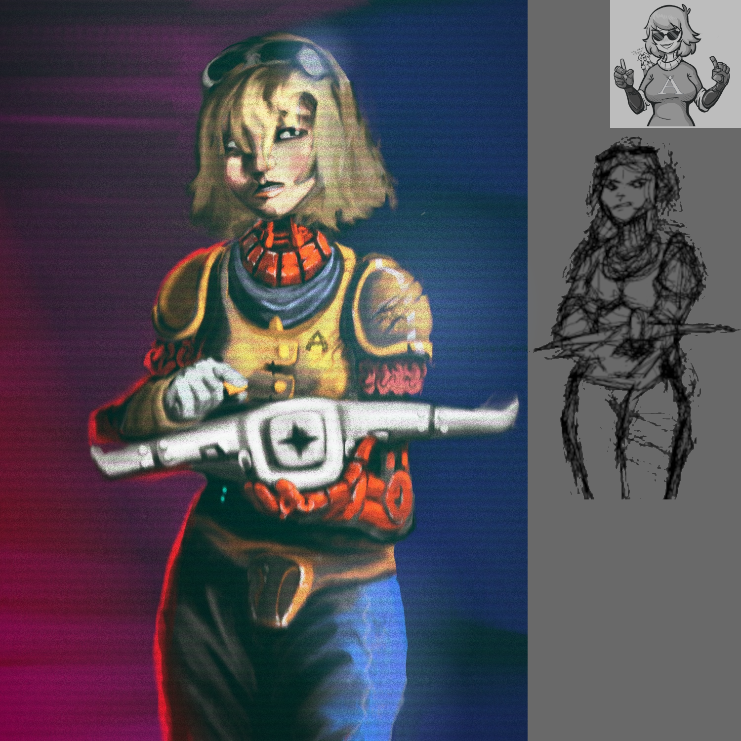 Суть заказа- Кибербаба-попаданец-рыцарь с использованием исходного персонажа.