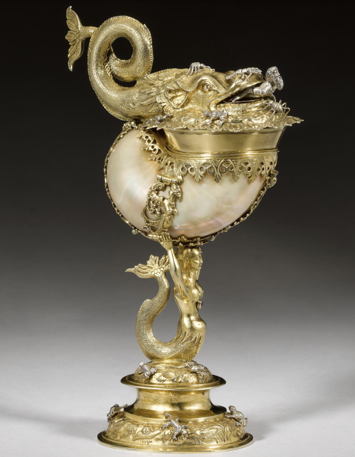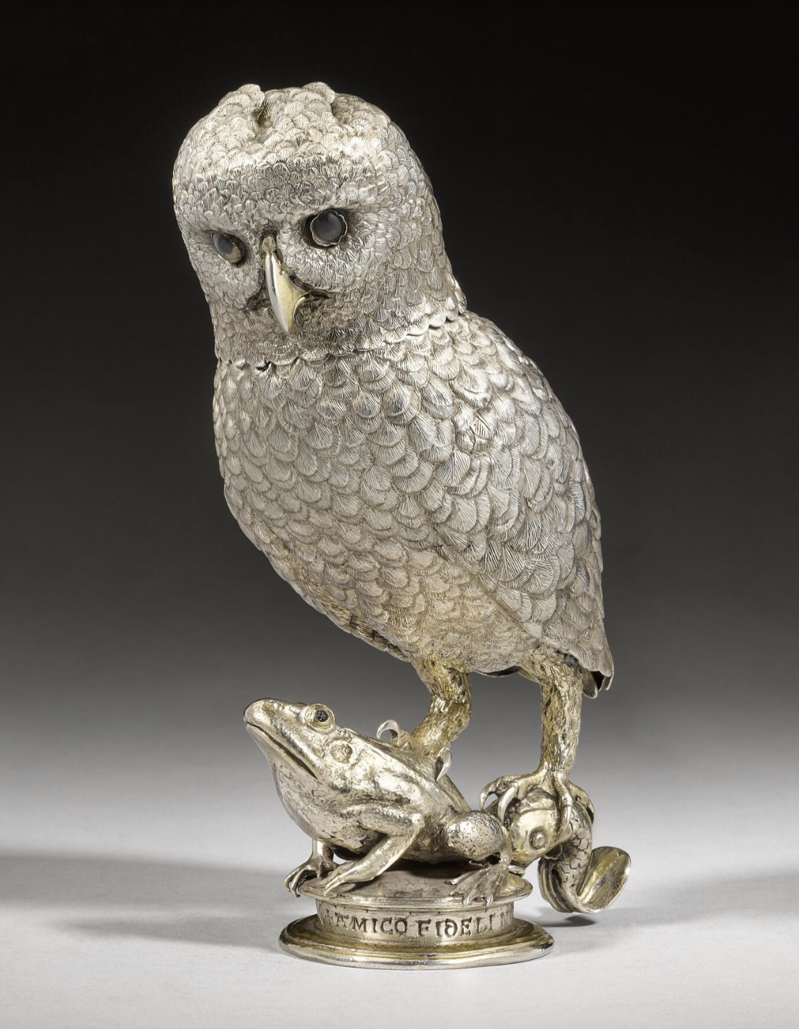 Фламандский кубок в форме совы из позолоченного серебра и съёмной головой. Ювелир Ян де Нагель III, Гент, 1557 г.