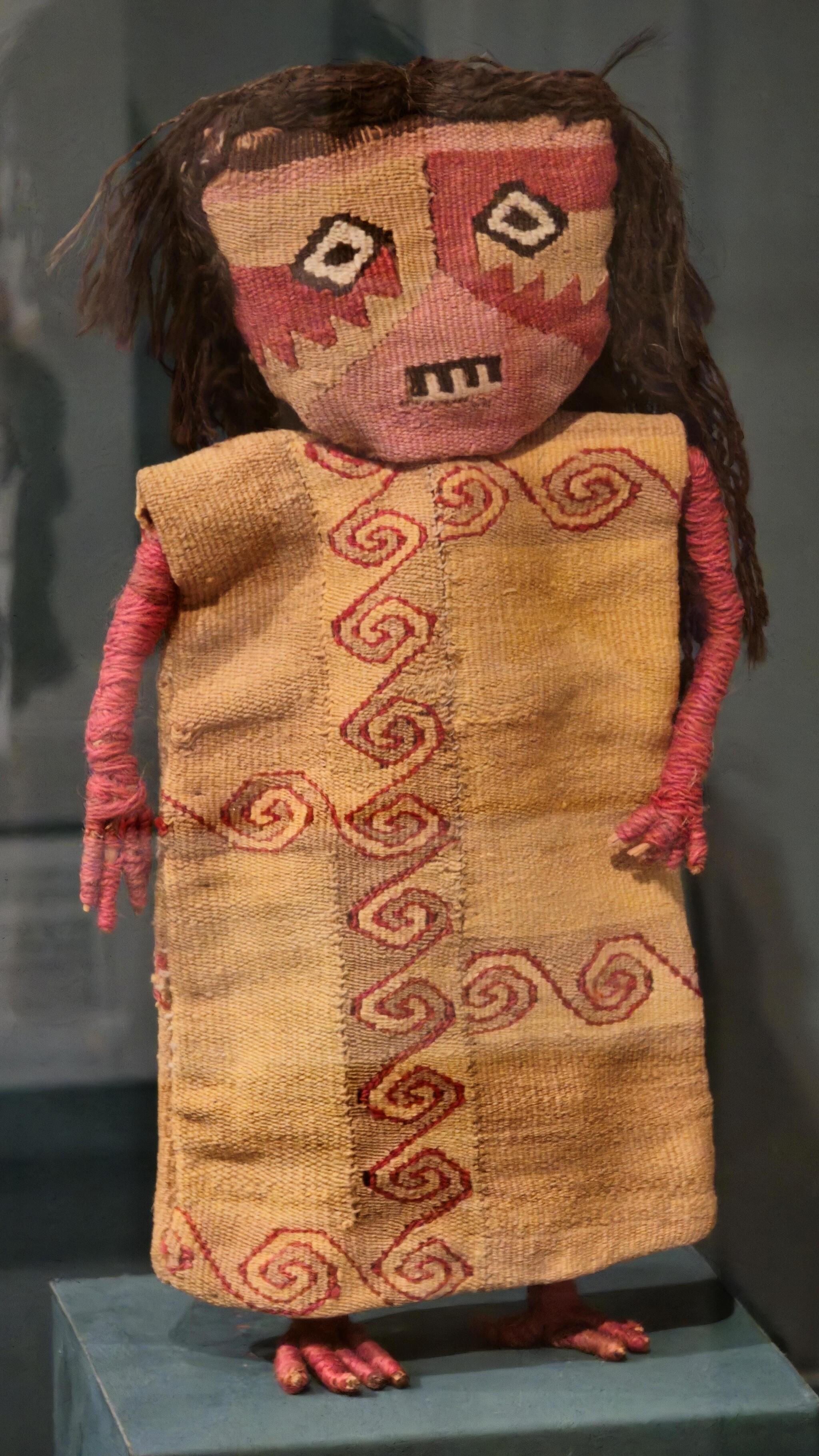 Кукла женщины. Культура Чанкай, центральное побережье, Перу, ок. 1100–1470 гг. Хлопок, шерсть, тростник и пигмент. Коллекция Художественной галереи Йельского университета.