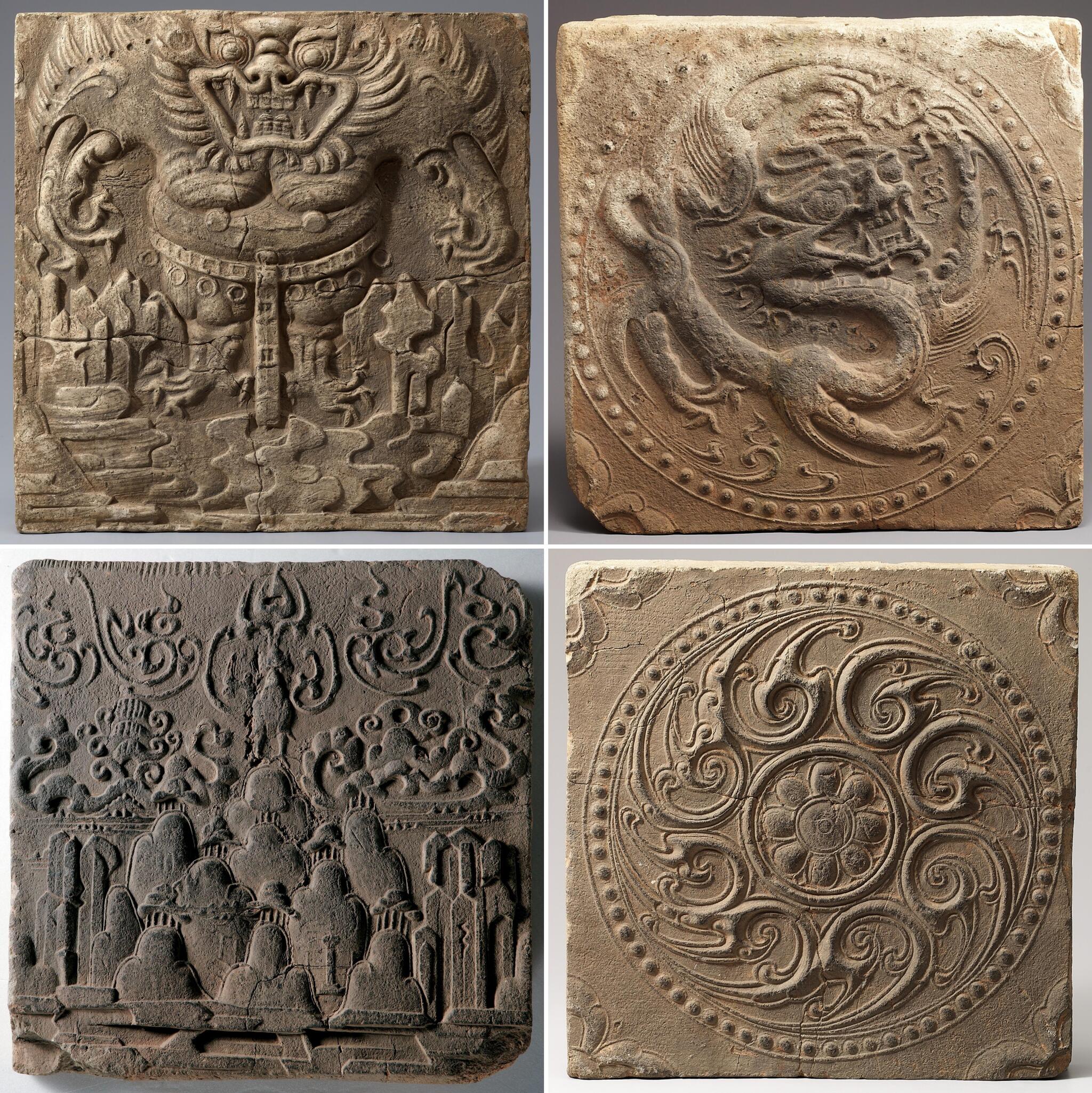 Узорчатая глиняная плитка из Оэри в Пуё, Корейское Королевство Пэкче, 18 г. до н.э. – 660 г. н.э. Ныне хранится в Национальном музее Кореи.