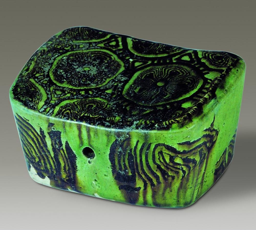 Керамическая подушка с зелёной глазурью. Янчжоу, Китай, династия Тан, 618–907 гг. Музей Янчжоу, Китай.