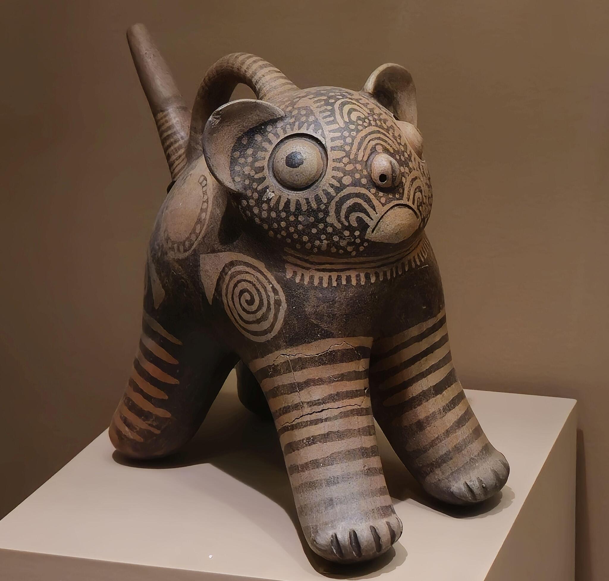 Бутылка в форме стоящей кошки, культура Галлинасо, Северное Перу, 200 г. до н.э. – 600 г. н.э. Американский музей естественной истории.