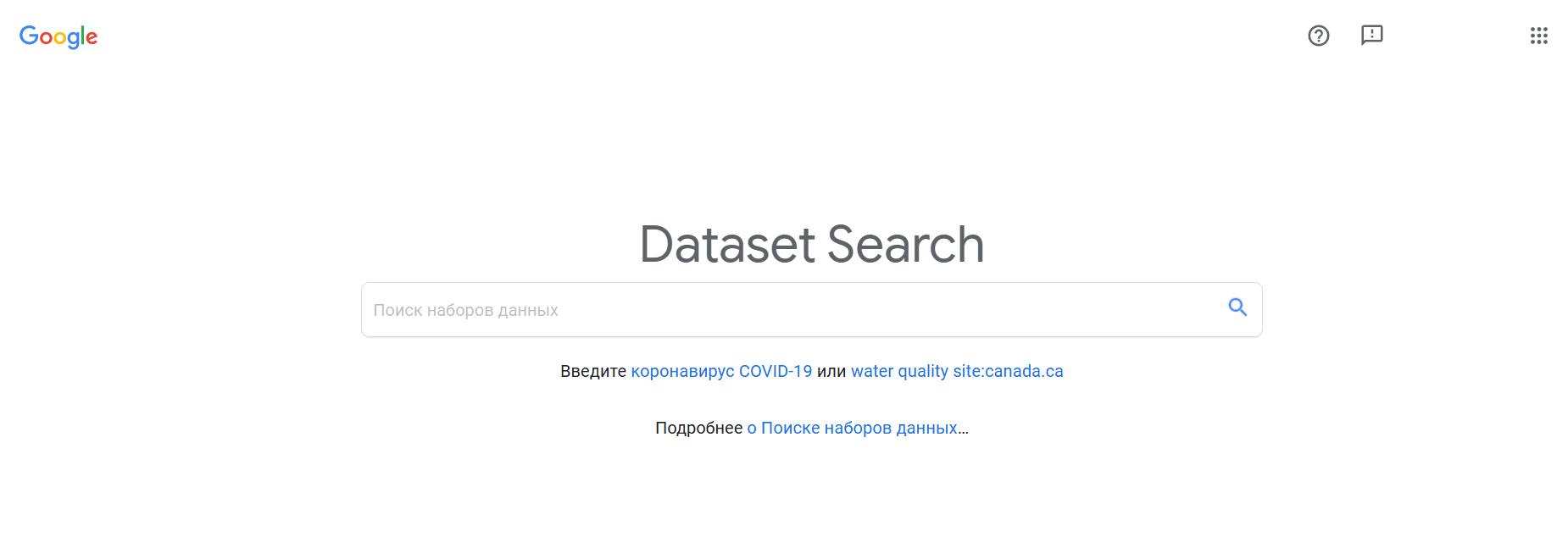 4. Google Dataset Search — поисковик от Google, который помогает находить открытые датасеты по любым темам: от научных исследований до социальных и экономических данных. Удобный инструмент для быстрого поиска нужной информации.