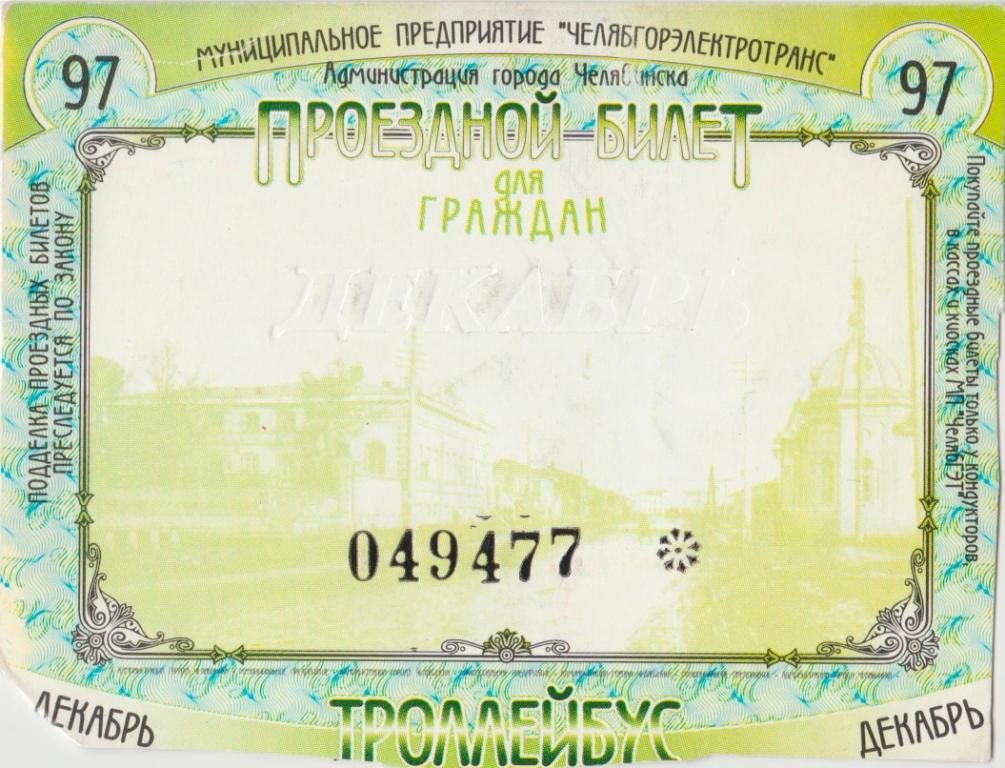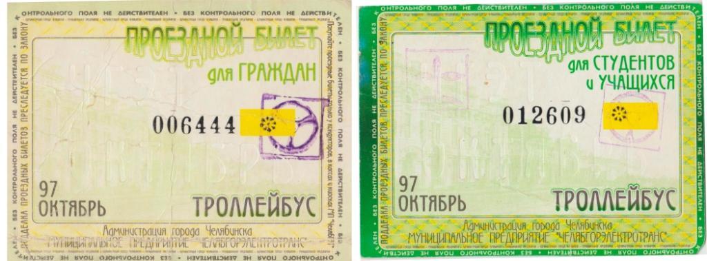 Август 97, на проездном также старые фото Челябинска, также есть отличия в цветах для Граждан и Студентов с учениками. Сбоку на проездном есть надпись, что подделка преследуется по закону. В 98 году, есть такой проездной у меня к которому есть вопросы.