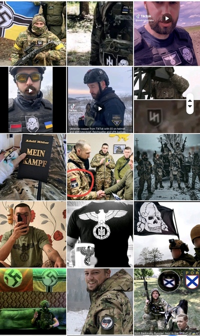 Какой же дегенерат. Это все фото, запощенные самими хохлами собственноручно в соцсетях. Сотни уникальных самосвидетельств. А ты какой-то шизовысер в третий раз копируешь уже. Совсем уже на голову убогонький?