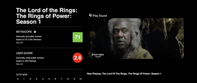 15 минут первого эпизода честно просмотрены. Сериал оставляет странное впечатление. Не сочтите, что притягиваю за уши. Но вселенную Толкиена информационно насилуют так же, как нашу страну в последнее время. Переврали вообще все. Первоисточник никто не читал. Ладно, пусть. Допустим хотели срубить бабла на имени Толкиена. Не вопрос, будем смотреть как независимую историю. И вот что я вам скажу, это полный шлак.