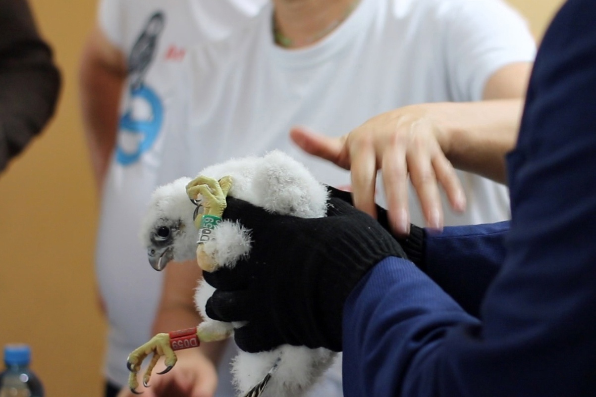 10 июня 2024 г. была проведена процедура кольцевания потомства пары сапсанов, которые гнездятся на крыше административного здания Уралсиб в г. Уфа. Данная процедура проводится в этой локации с 2019 г. Каждый год орнитологи проекта «Атлас птиц г.Уфы» птенцам сапсанов в возрасте 3 недель надевают на лапы кольца с индивидуальными номерами, собирают морфометрические показатели и их осматривает ветеринарный врач. Кольца несут цветовые метки региона – красный цвет кольца на правой лапе и бело-зелёный на левой означают, что птица родилась в Волго-Уральском регионе.
