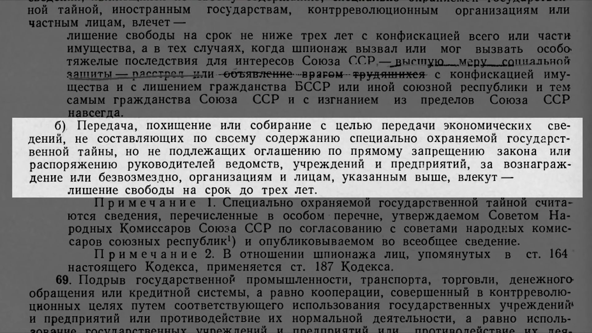 передача экономических сведений, подрыв государственной промышленности,