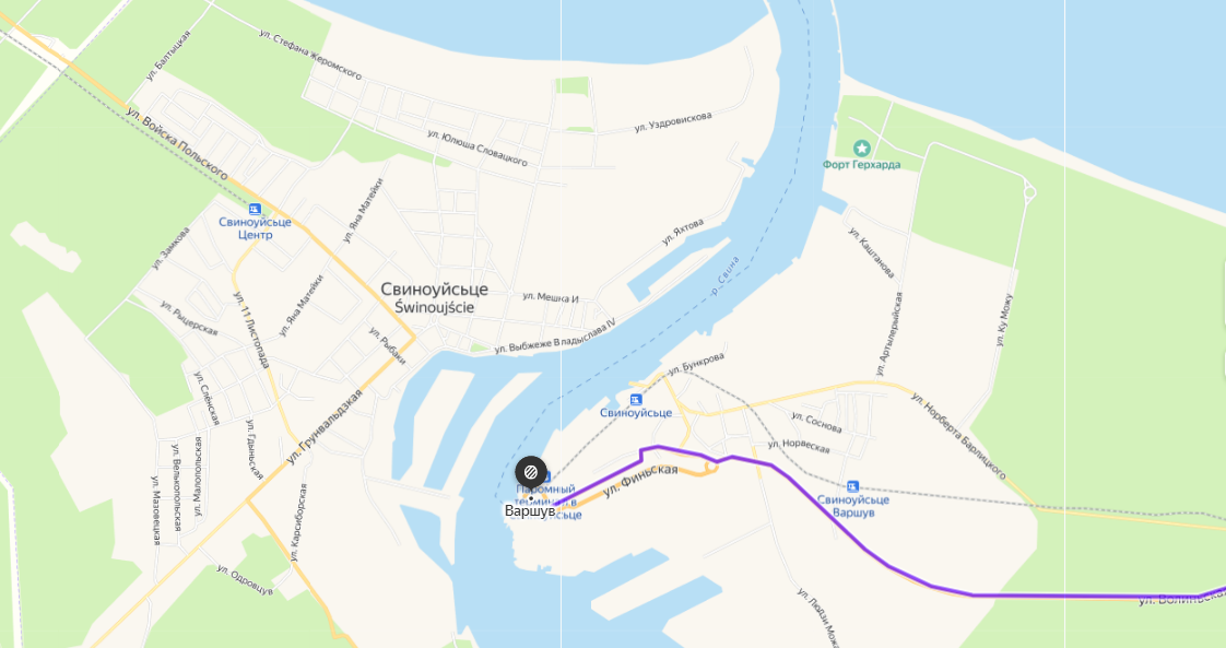 Приехали в Свиноуйсьце довольно рано, нашли хорошую портовую гостиницу и слегка оттянулись. Утром у Олега температура 38+, оставили их в номере с Борисом, а с Андреем пошли гулять по городу. Основная его часть на другом берегу реки, но был бесплатный катер, каждые полчаса