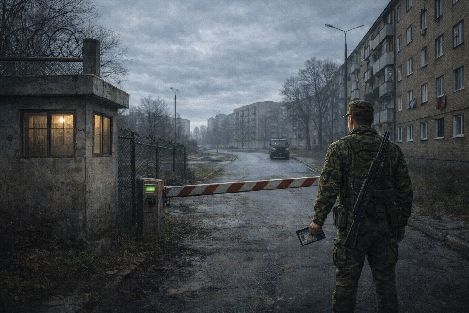 Потом была ещё одна проходная. Тут всё выглядело серьёзнее: ребята в бронежилетах, автоматы висят на уровне бёдер. Сомневаюсь, что пули у них резиновые. Спросить не решился.