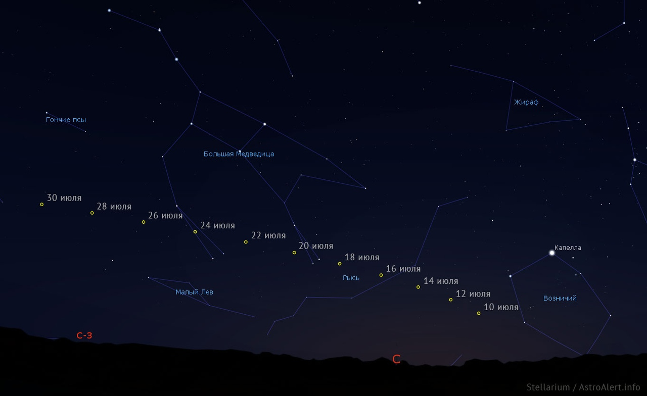 смотреть с северной стороны, левее и ниже Капеллы. Но надо чтобы было максимально темно, если у вас белые ночи, то не прокатит))