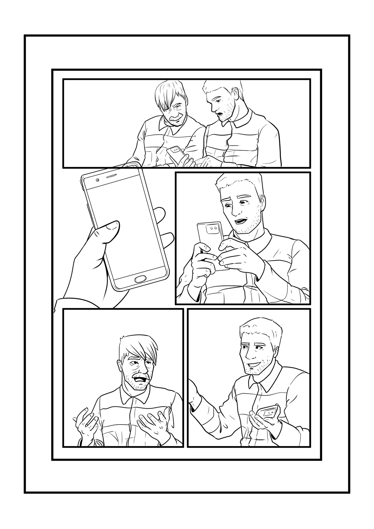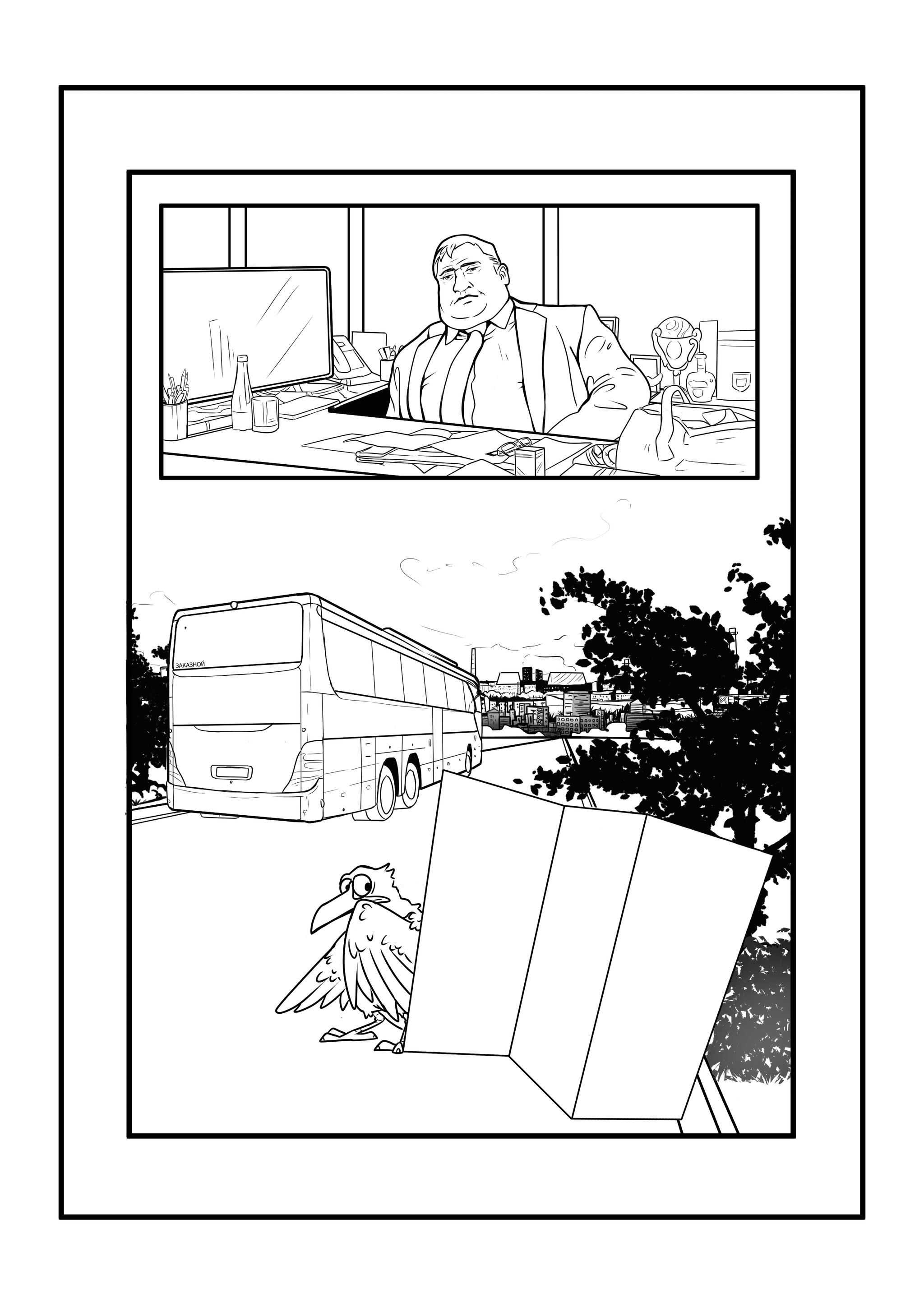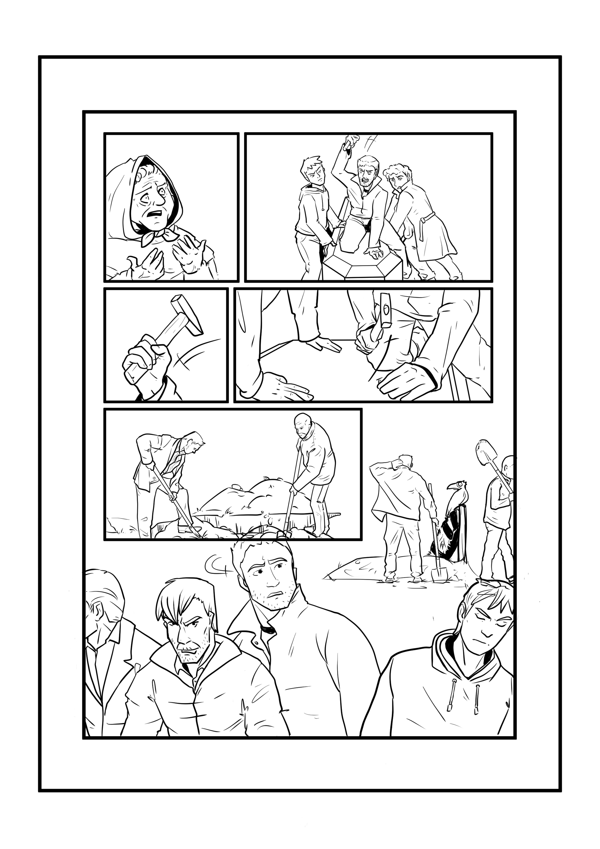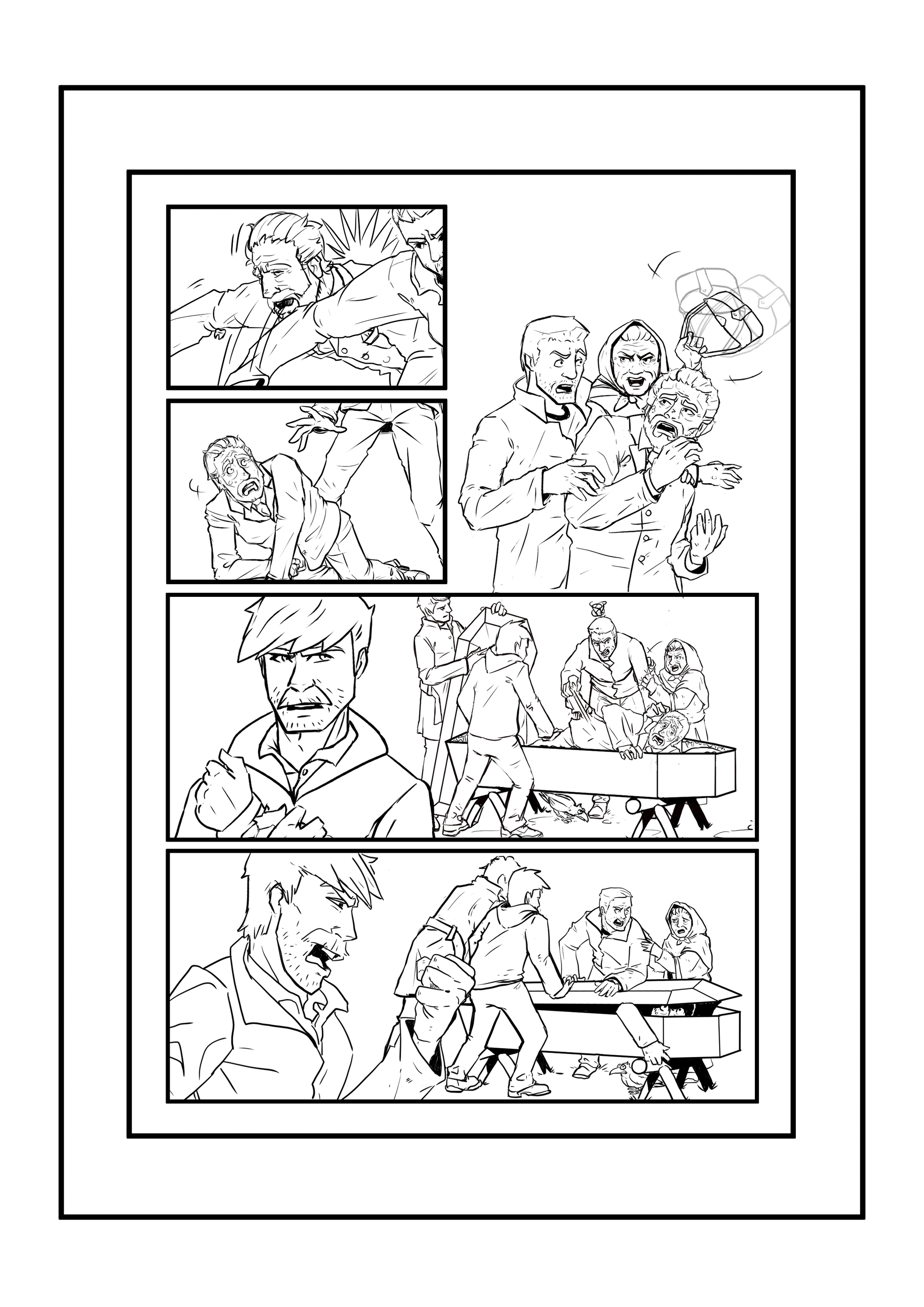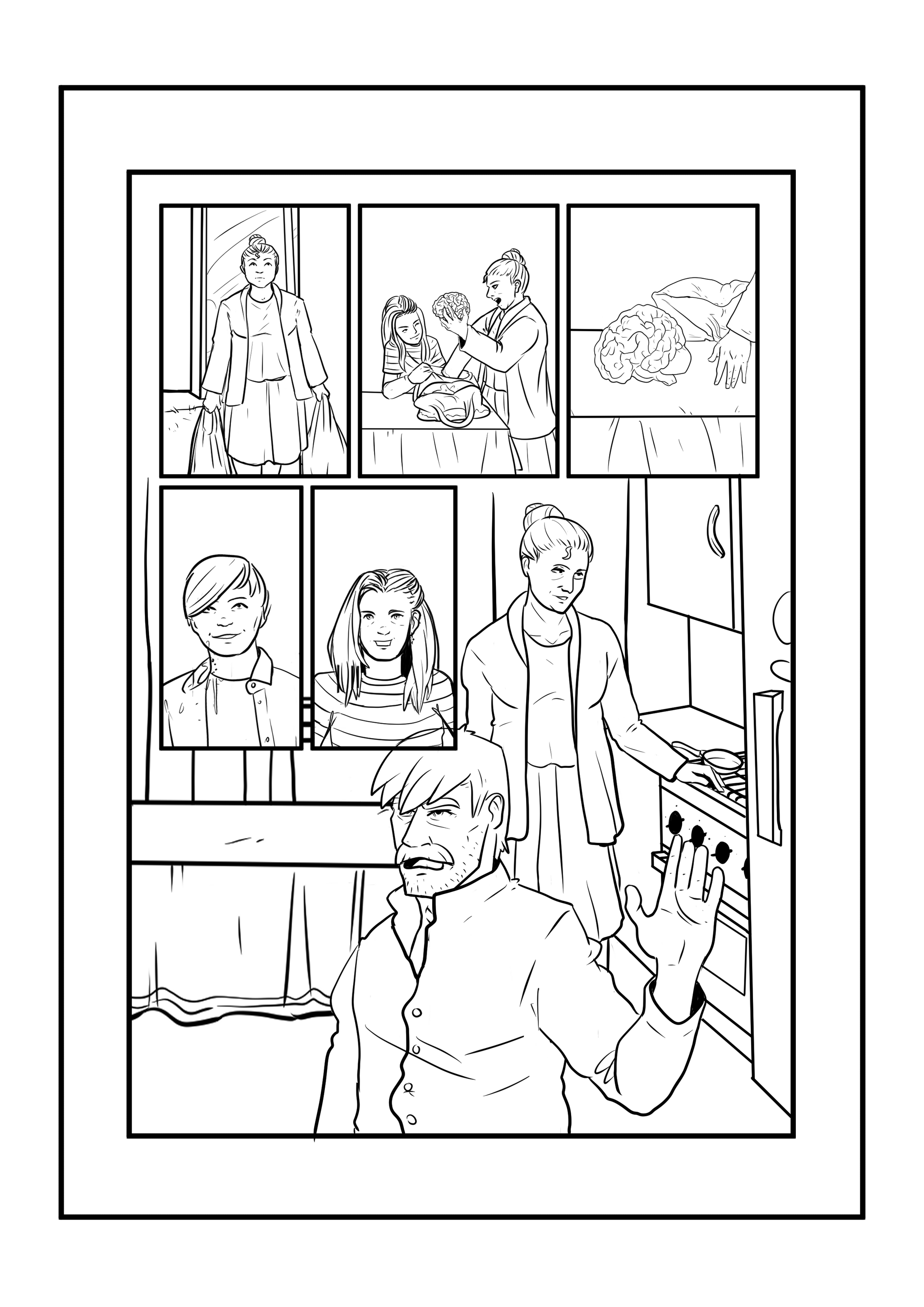 Продолжается работа по комиксу по рассказу "Мозги...", до конца осталось совсем немного, уже готов черно-белый вариант в линиях: