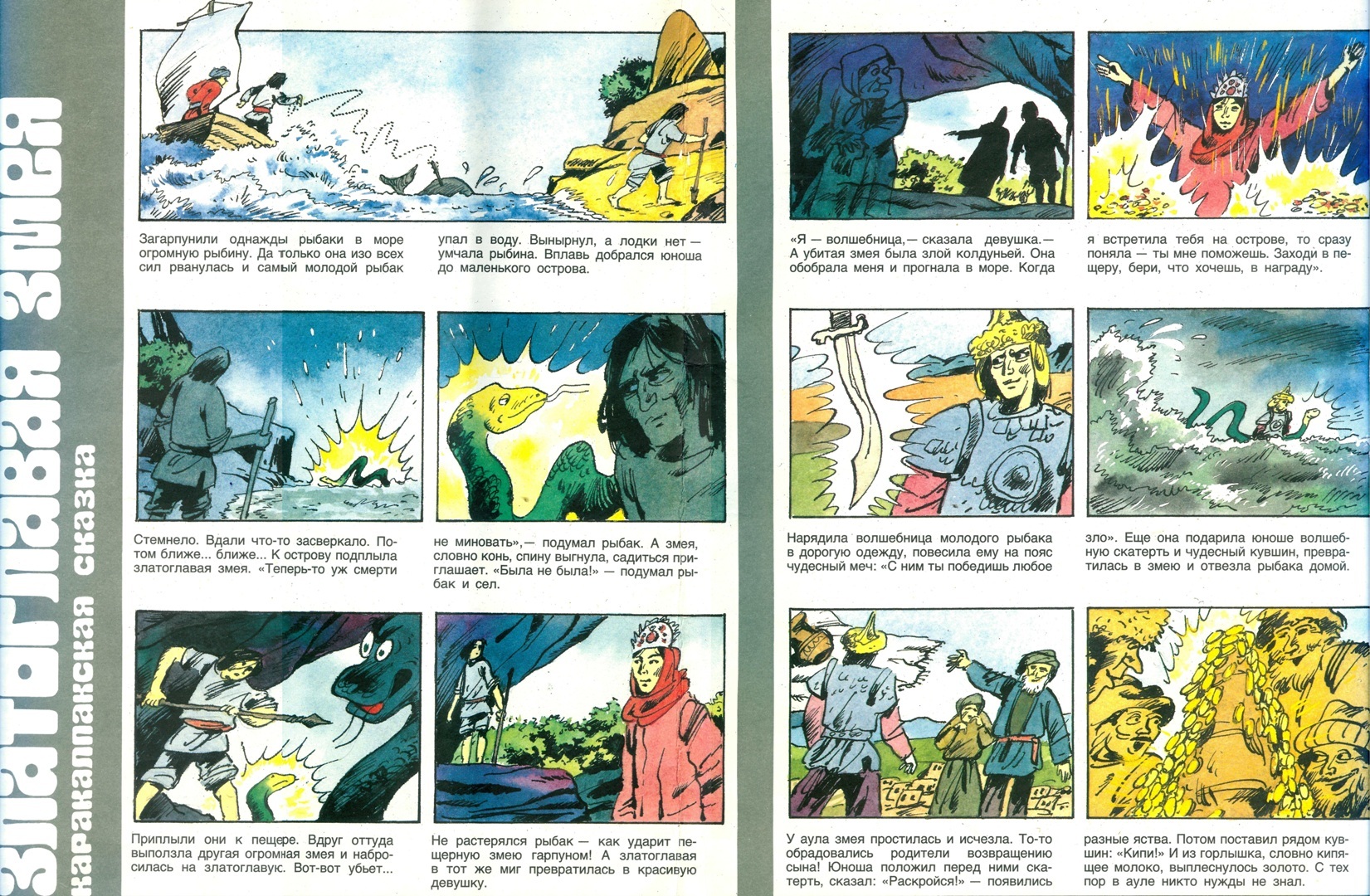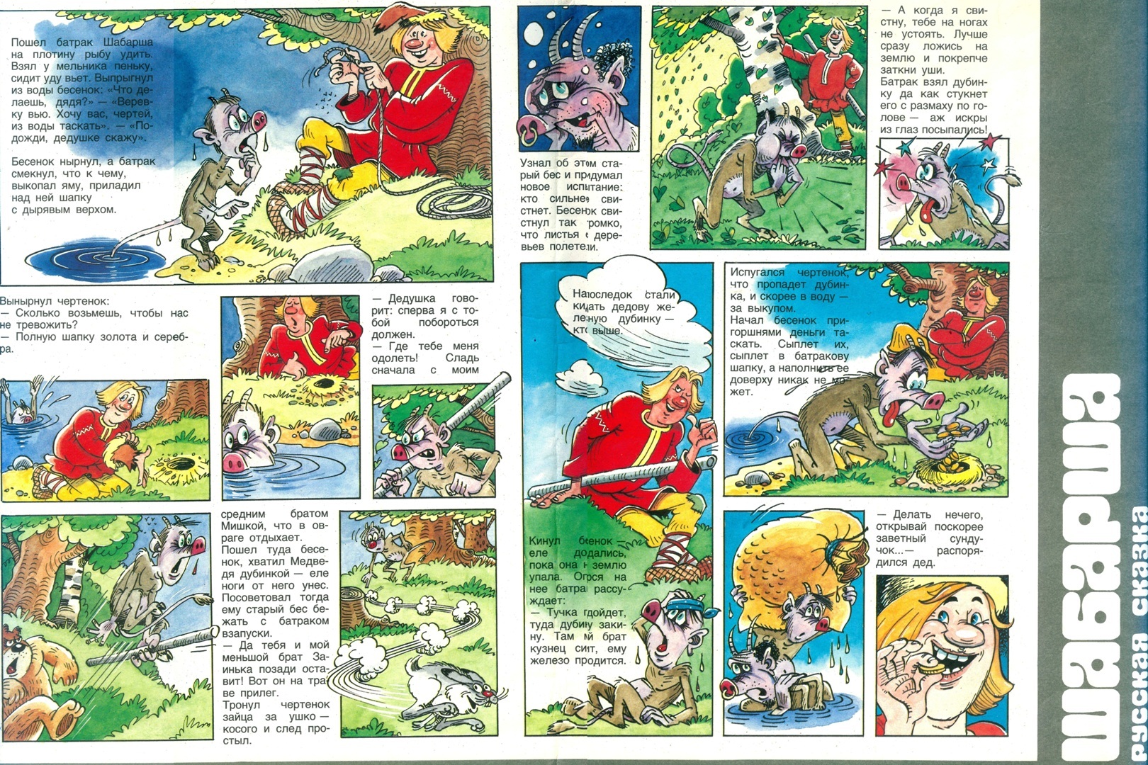 На титульной странице комикса написано - "Всем, кто любит сказки и веселые истории". Содержание отлично соответствует данному "превью". Над выпуском работали - В. Розанцев, М. Шпагин, В. Васильев, Л. Хачатрян, Т. Сокольская, А. Плаксин, В. Павлов. Зав. редакцией - В. Тринченко. "Внутри" следующие повествования: "Шабарша (русская сказка о смекалке)"; "Волшебные дудочки (латышская сказка про везение и талант)"; "Кот-воевода (русская сказка о важности пиара и дружбы)"; "Златоглавая змея (каракалпакская сказка о смелости)".