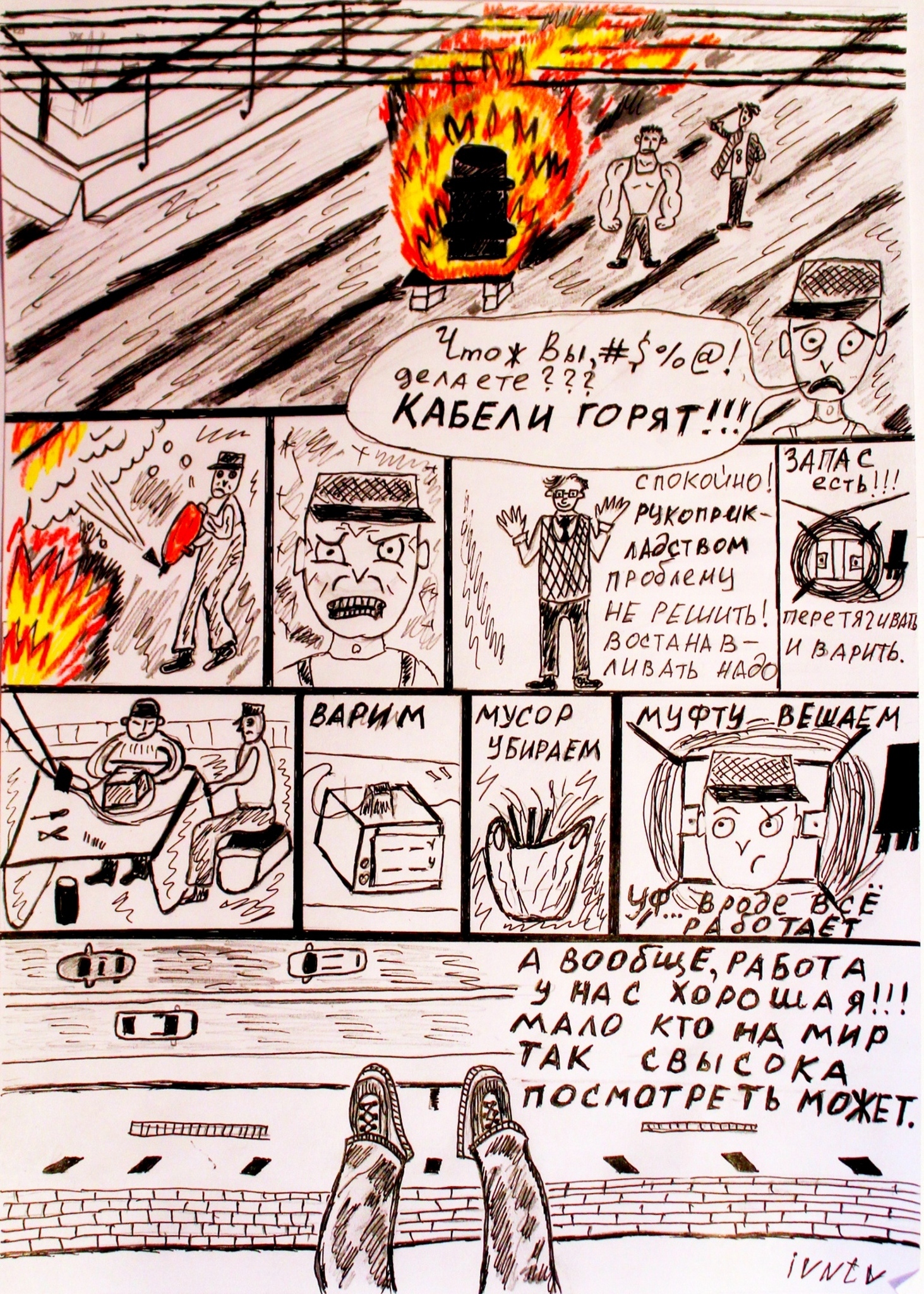 9 ivntv Комикс телекоммуникационный. Пожар Серия Монтажные байки 11 месяцев назад [моё] Комиксы Картинки Телеком Монтажник Интернет Длиннопост 1 Ещё 0