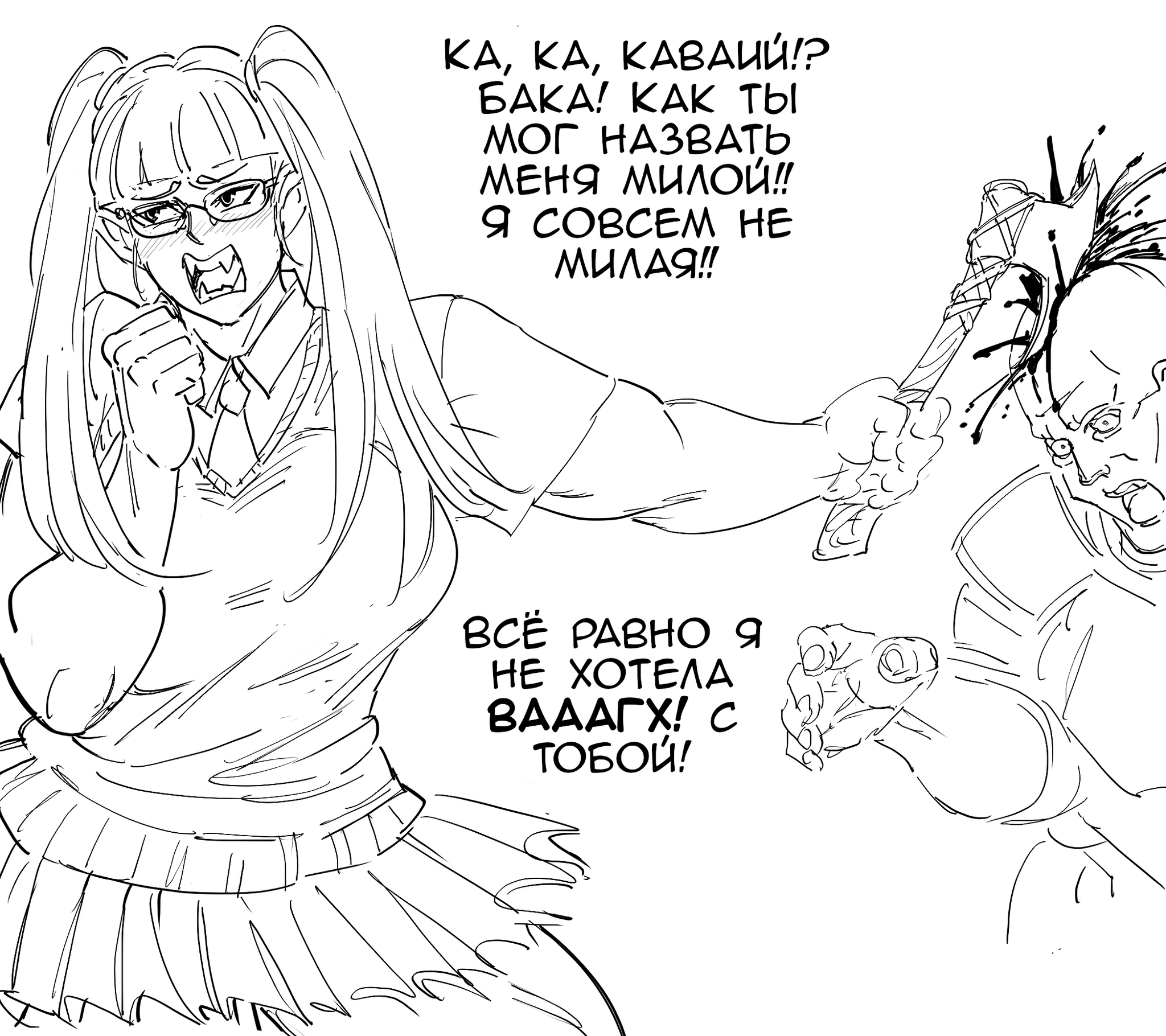 Чтобы выразить свою благодарность, держите эту орчиху школьницу-цундере с хвостиком, которую я нарисовал во время просмотра "Саекано".