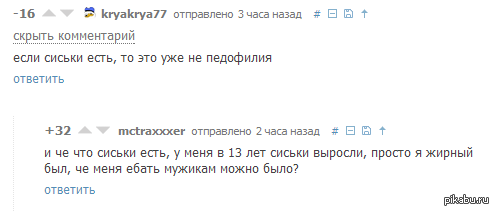 Ну технически педофилия - это влечение к детям допубентарного возраста. Значит, когда сиськи есть, то уже не педофил, лол.