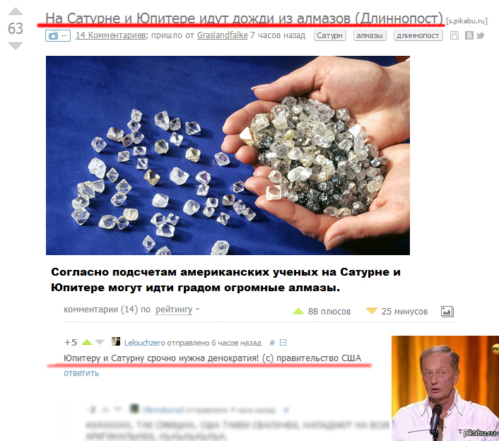 457 nakedmexican Комментарии на пикабу как обычно радуют) 12 лет назад Взято из поста http://pikabu.ru/story/_1629121 Алмазы Юпитер Сатурн США Хитрость Комментарии