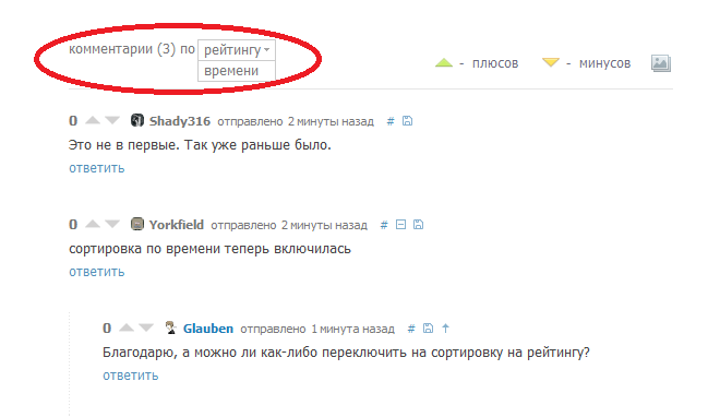 Glauben Комментарии перепутались 11 лет назад Раньше комментарии шли от самого заплюсованного до самого заминусованного, а сейчас нет. Почему так, и что делать? [моё] Комментарии Помощь