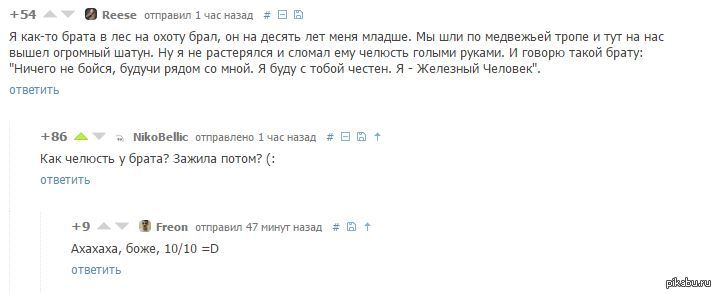 96 Gladiatorrr Комментарии убили конечно. 10 лет назад Взято от сюда http://pikabu.ru/story/_3296360 Комментарии Кабан Брат Моё