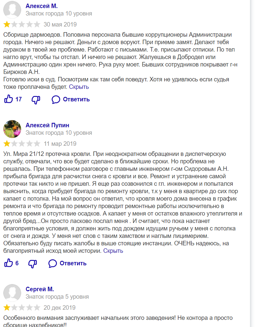 Речь идет о УК "МУП Управление заказчика" с потрясающей народной любовью, судя по рейтингу в 1,8 балла и соответствующим отзывам в интернете.