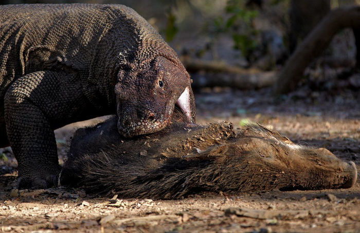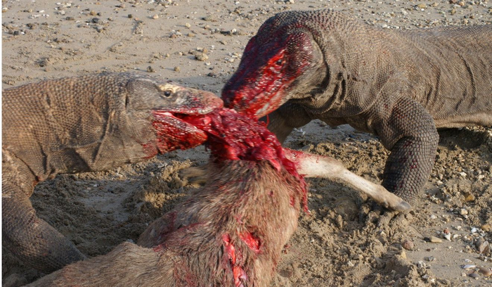 Варан не разменивается по мелочам, а потому для охоты выбирает самых больших существ, что есть на острове. Это буйволы, лошади, кабаны или другие вараны. Эти ребята очень любят баловаться каннибализмом. Добыча в 10 раз больше варана не пугает, ведь у него воистину брутальный и жестокий метод убийства. Подкрадываясь к жертве, варан со всей дури бьет своим тяжелым хвостом прямо по ногам животного. В большинстве случаев ноги скотинки просто ломаются, и добить беднягу не составит труда. Если же такая тактика не прокатит, то варан будет кружиться вокруг цели, с каждым ударом разрывая сухожилия и нанося серьезные увечья.