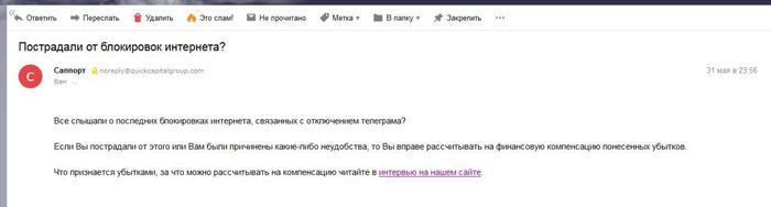 "Компенсация" за недоступные из-за блокировок ресурсы.