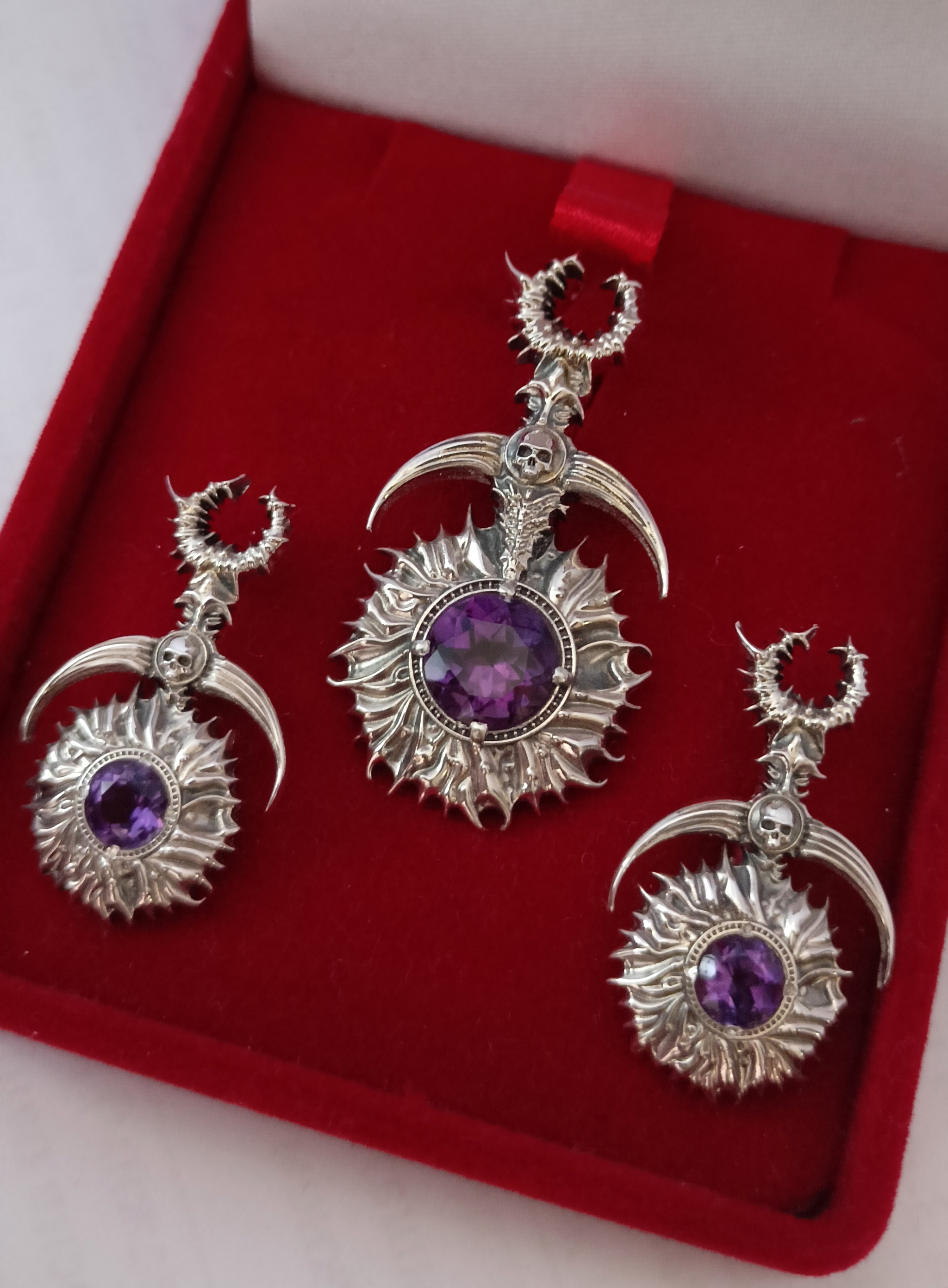 Здравствуйте . Сделал комплект Слаанеш Кулон и Серьги с Натуральными Аметистами . Фото и Видео . С Природными Камнями выглядит конечно покрасивее )