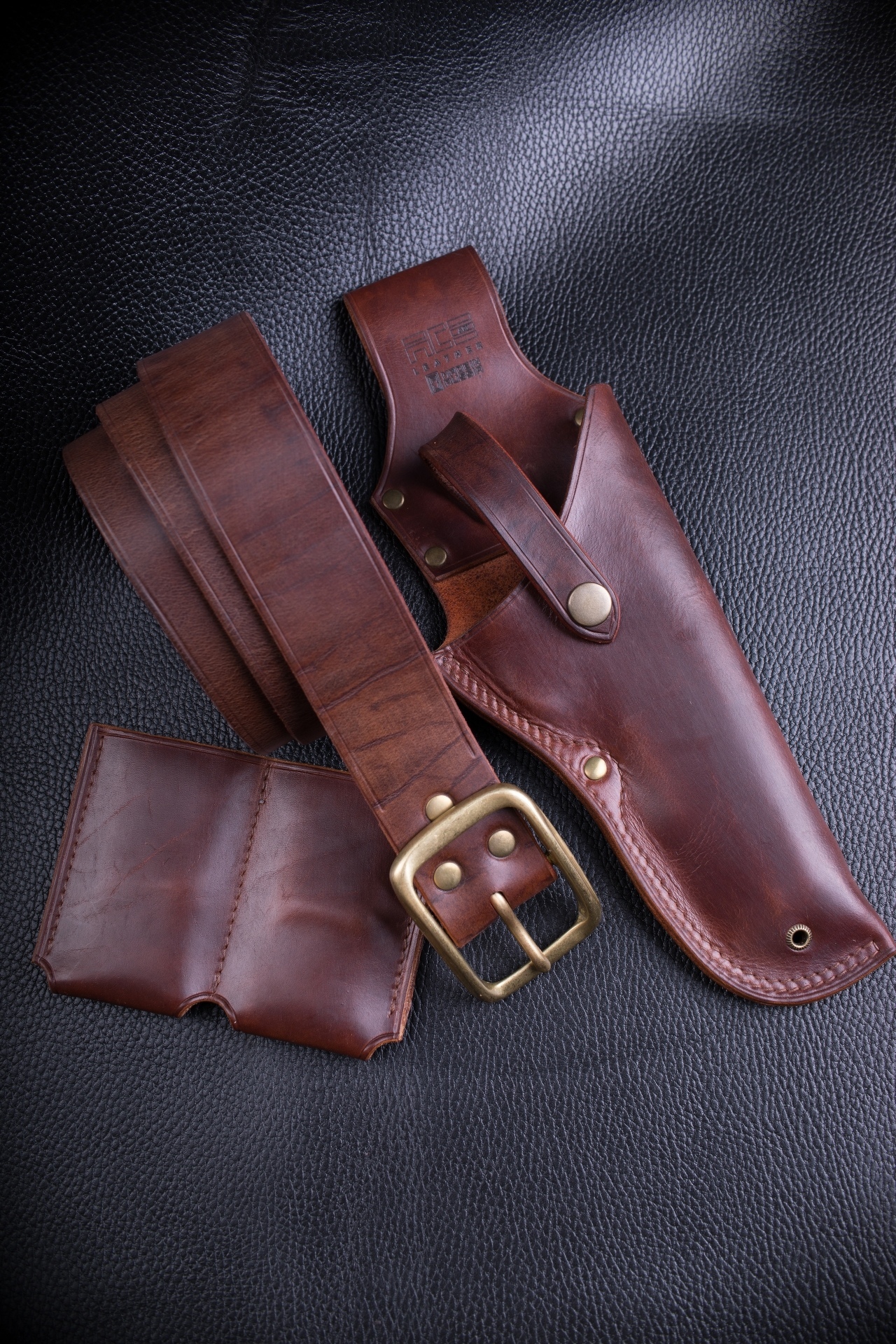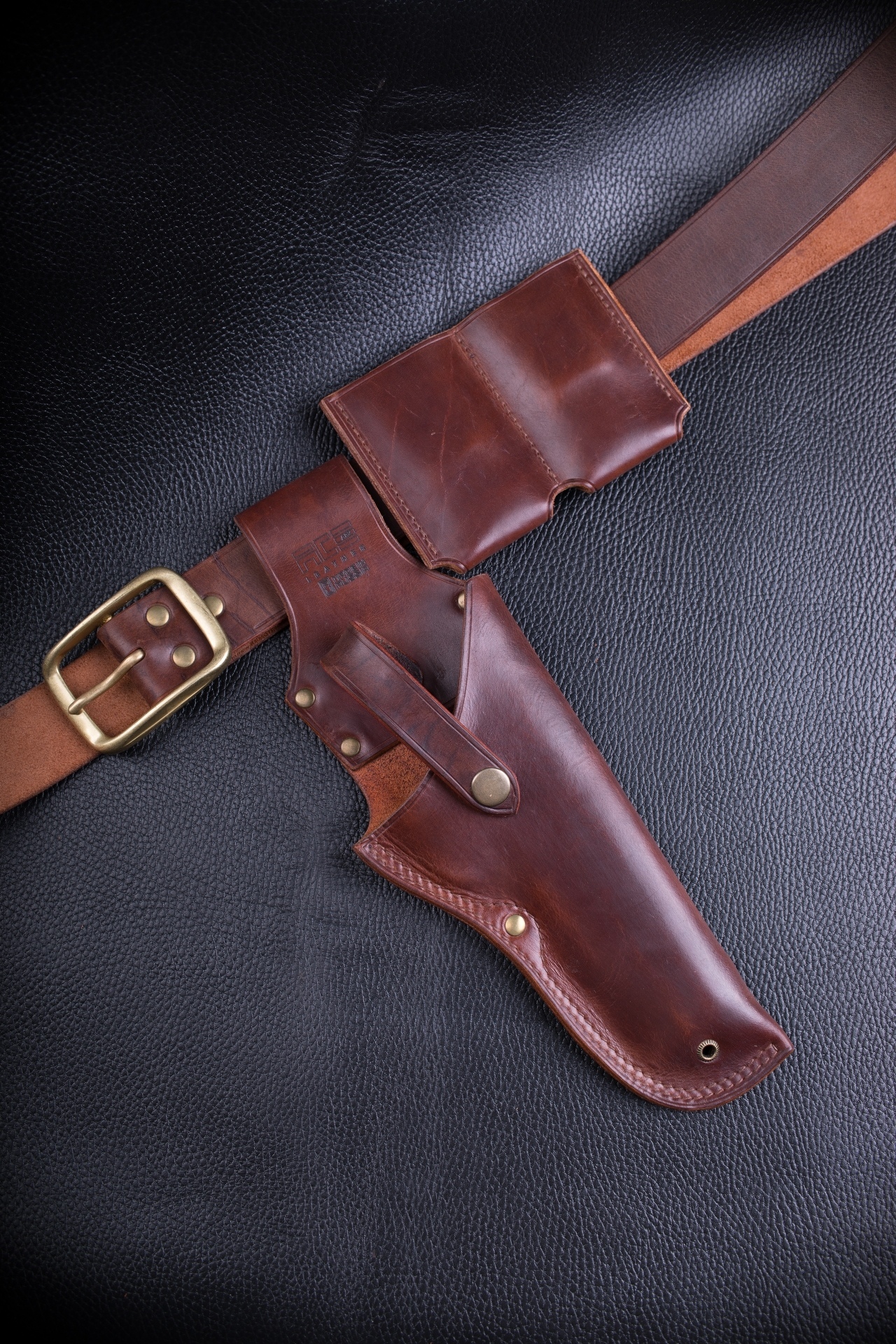 Кобура располагается ниже линии пояса, что удобно для использования, для надёжной фиксации используется кожаный шнур продетый через люверсы и завязанный вокруг бедра.